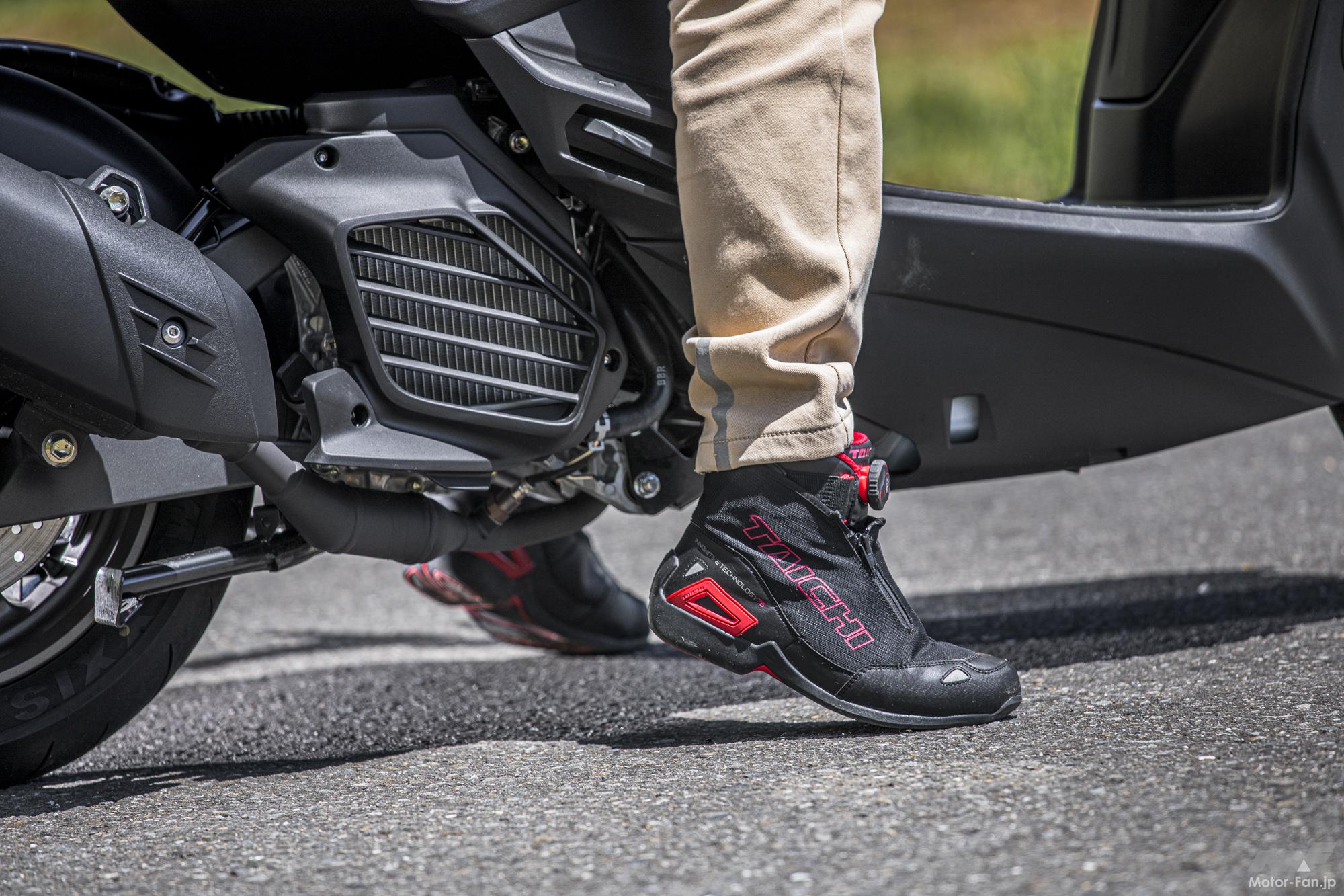 ライディングポジションとしては、低く寛ぐようなシートポジションが一般的な昨今の人気スクーターと比較すると、ヨーロッパ製のスタンダードスクーターを思わせるしっかりとした乗り味がそこにある。