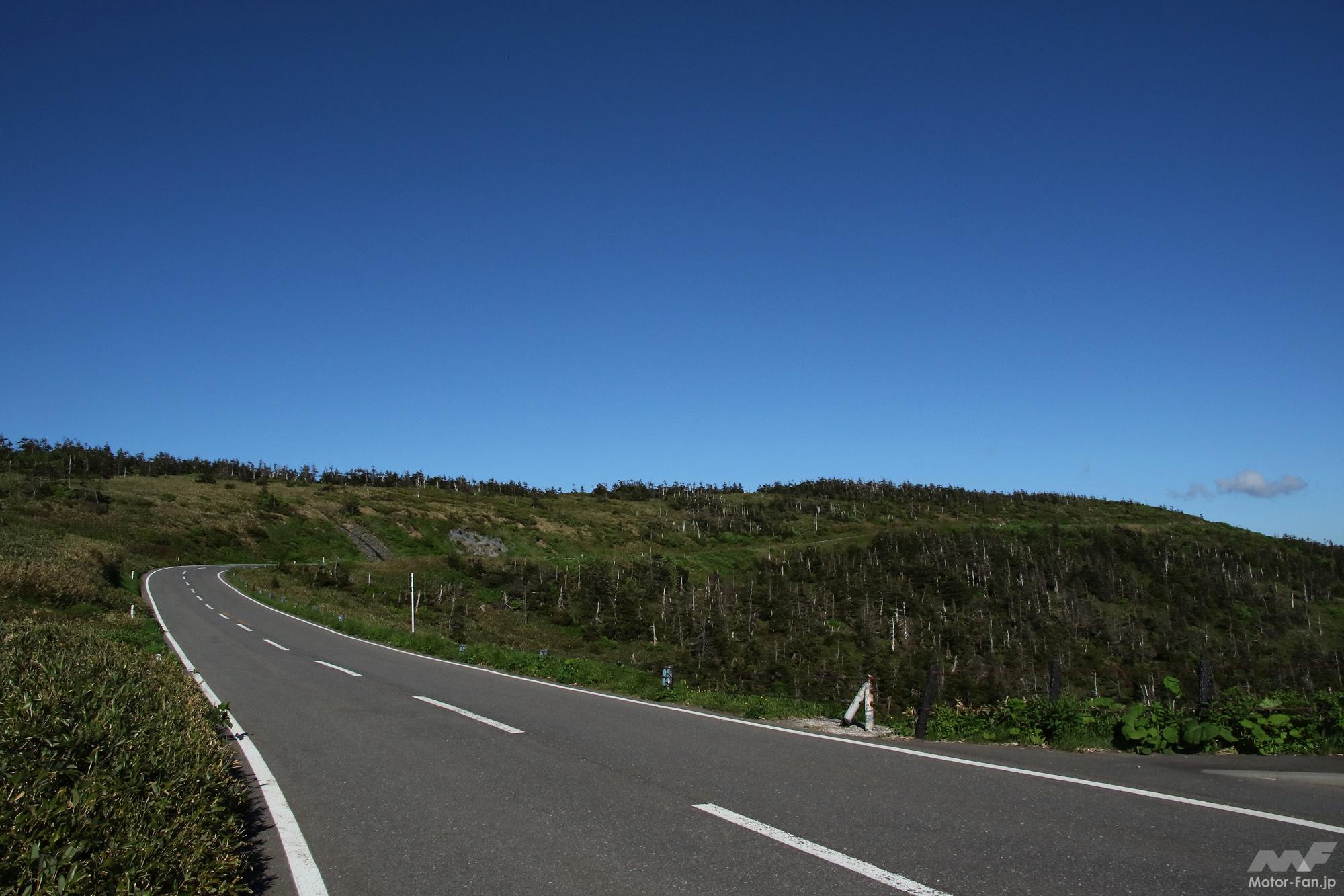 今回は秋田と岩手の県境を跨ぐ快適な高原道路。岩手県側からスタートすると東北自動車道の松尾八幡平インターチェンジを出て県道45号線を西へ向かい、23号線を右折すると始まるワインディングロードが「八幡平アスピーテライン」だ。県境の最高地点となる見返峠を超えて27kmほどのワインディングロードが続いている。見返峠には23号線から20kmほどで到着。そこに「八幡平山頂レストハウス」がある。