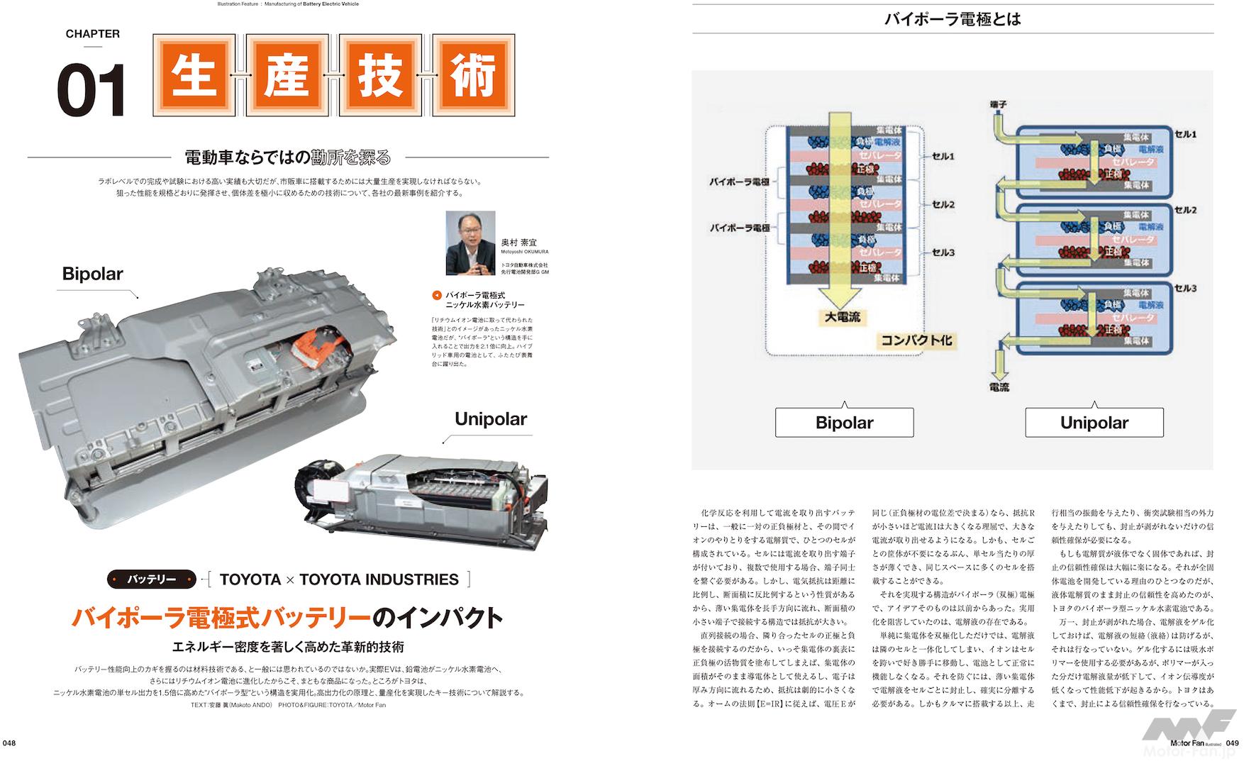 CONTENTS [モーターファンイラストレーテッド vol.182] 【図解特集:EVの作り方】 [Introduction] BEV(バッテリー電気自動車)ができるまで 【Chapter 1】生産技術 Battery [トヨタ自動車×豊田自動織機] バイポーラ電極のインパクト Motor [ホンダ] 電気モーターのトレンドは高密度と高出力・低損失 Semiconductors:[ローム] EVの効率を飛躍的に向上させるSiCへの期待 Production [マツダ] 宇品工場におけるマツダMX-30EVの混流生産 Die Castings [リョービ] ダイカスト部材のあり方を変える新工法 e-axle [ボルグワーナー] 小さく軽く、 しかも高効率に 【Chapter2】車両適合 Battery [日産] 薄型電池をとことん使う [Column]東芝が狙うニオブチタン系酸化物電池 Cooling [ホンダ] EVだってラジエーターは必要 NVH [レクサス] NVHと足まわり Safety [マツダ] そのとき、 バッテリーは守られるか