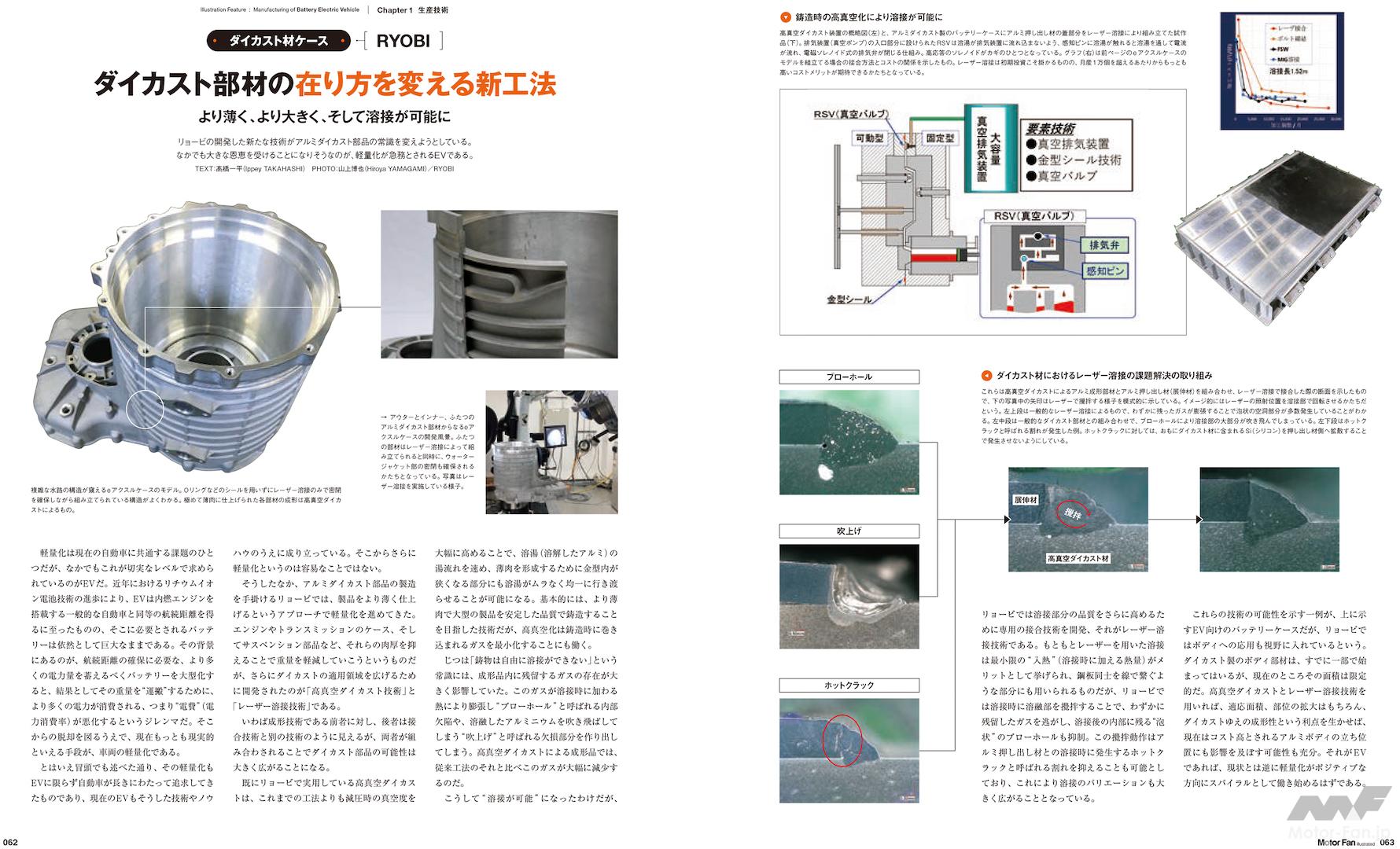 BEV(電気自動車)は、ICE車(内燃エンジン搭載車)に比べてバッテリーによる重量増が必須のため、軽量化が開発上のひとつのキーワードとなっています。アルミダイカスト部品の製造を手がけるリョービでは、「高真空ダイカスト技術」と「レーザー溶接技術」で、軽量に優れるダイカストの適用領域を広める技術を確立しました。その技術を解説します。