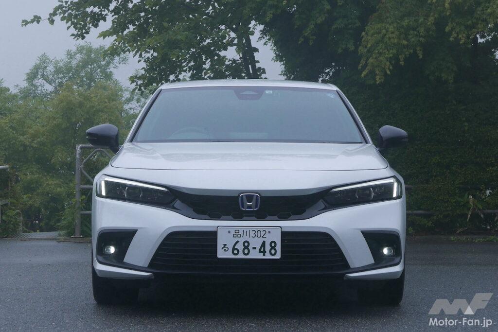 新たにシビックのラインアップに加わったe:HEVが爽快に仕上がっているのは、ガソリンエンジン仕様と共通している。より上質な味わいだ。事前に受けた技術説明から、エンジンの主張がもっと強いのかと予想していたが、実際はエンジンが主張しすぎず、静粛性の高さが際立つ。発電用と走行用の2つのモーターを持つホンダのe:HEVは、モーターで走るのが基本だ。加速時や登坂時など、大きなパワーが必要なときはエンジンを始動し、発電用モーターで発電した電力で走行用モーターを駆動する。
