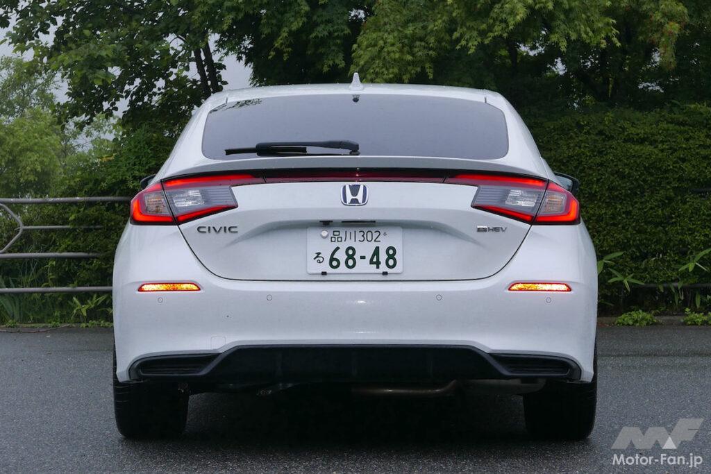シビックe:HEVは実に爽快。短い試乗だったので燃費を確かめるまでには至らなかったが、WLTCモードはガソリン仕様の16.3km/Lに対してe:HEVは24.2km/Lである。気分良く走って燃費がいいなんて、最高ではないか。