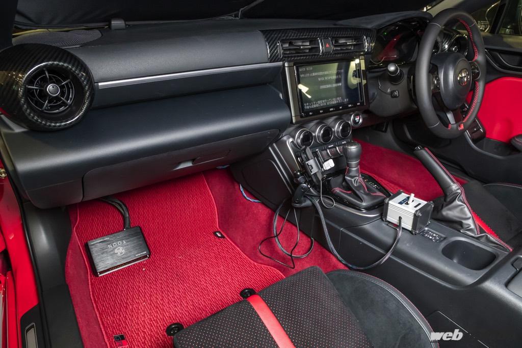 東京オートサロン会場では、GR86にXシリーズとαシリーズを切り替えて違いを体感できるシステムが用意されていたが、実際に試してみると音質もバランスも純正とは比較にならないほど向上していることが分かった。