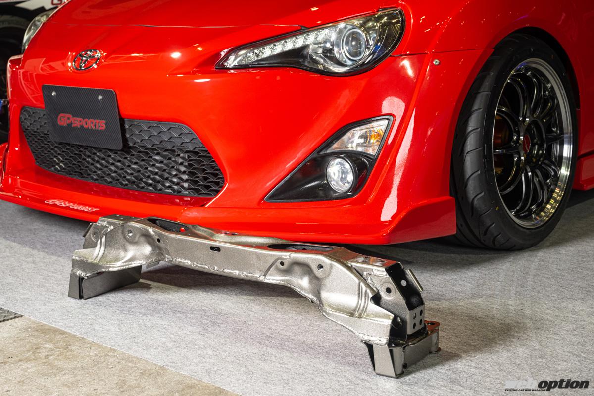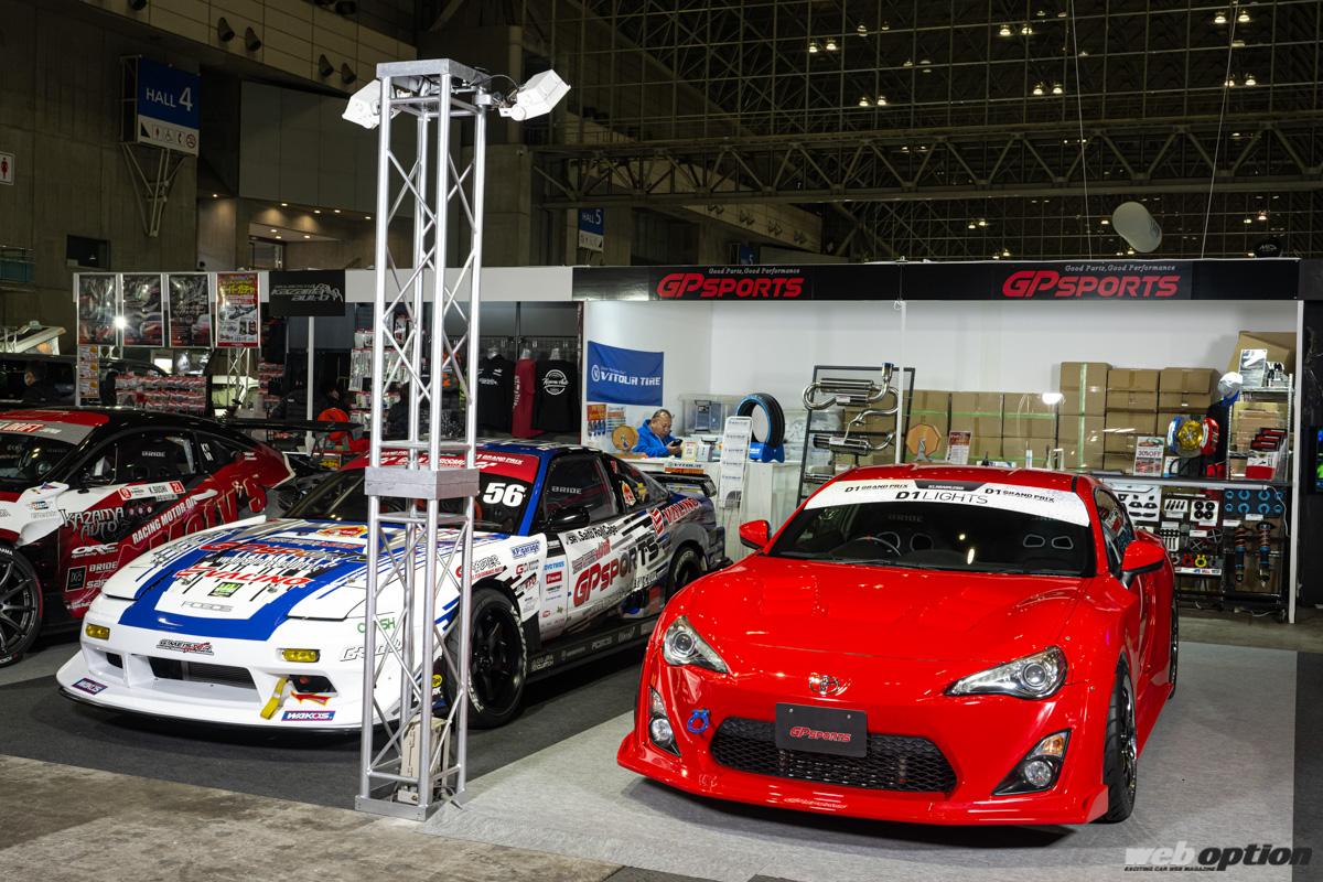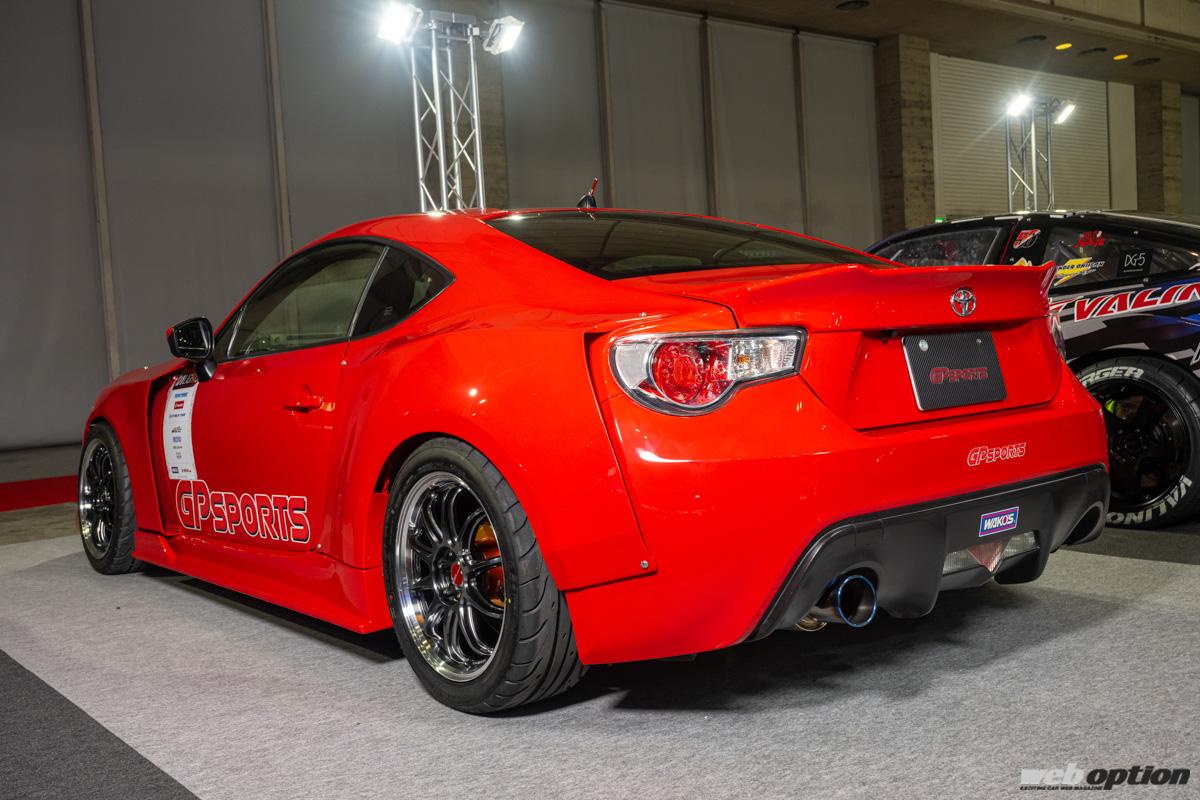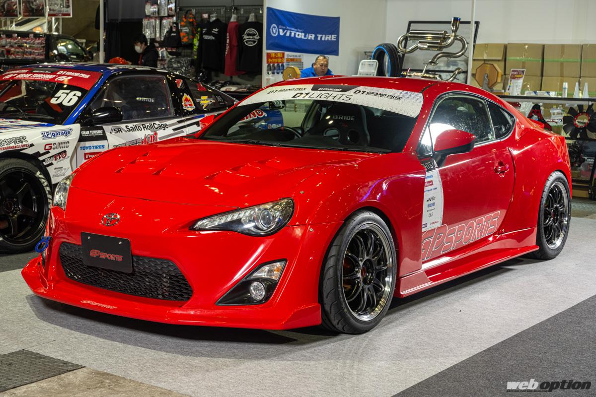 名門“GPスポーツ”は、新たなドリフトベースとして人気が高まっているZN6型86/ZC6型BRZの最新チューニングパーツをデモカーと共にアピールしていた。