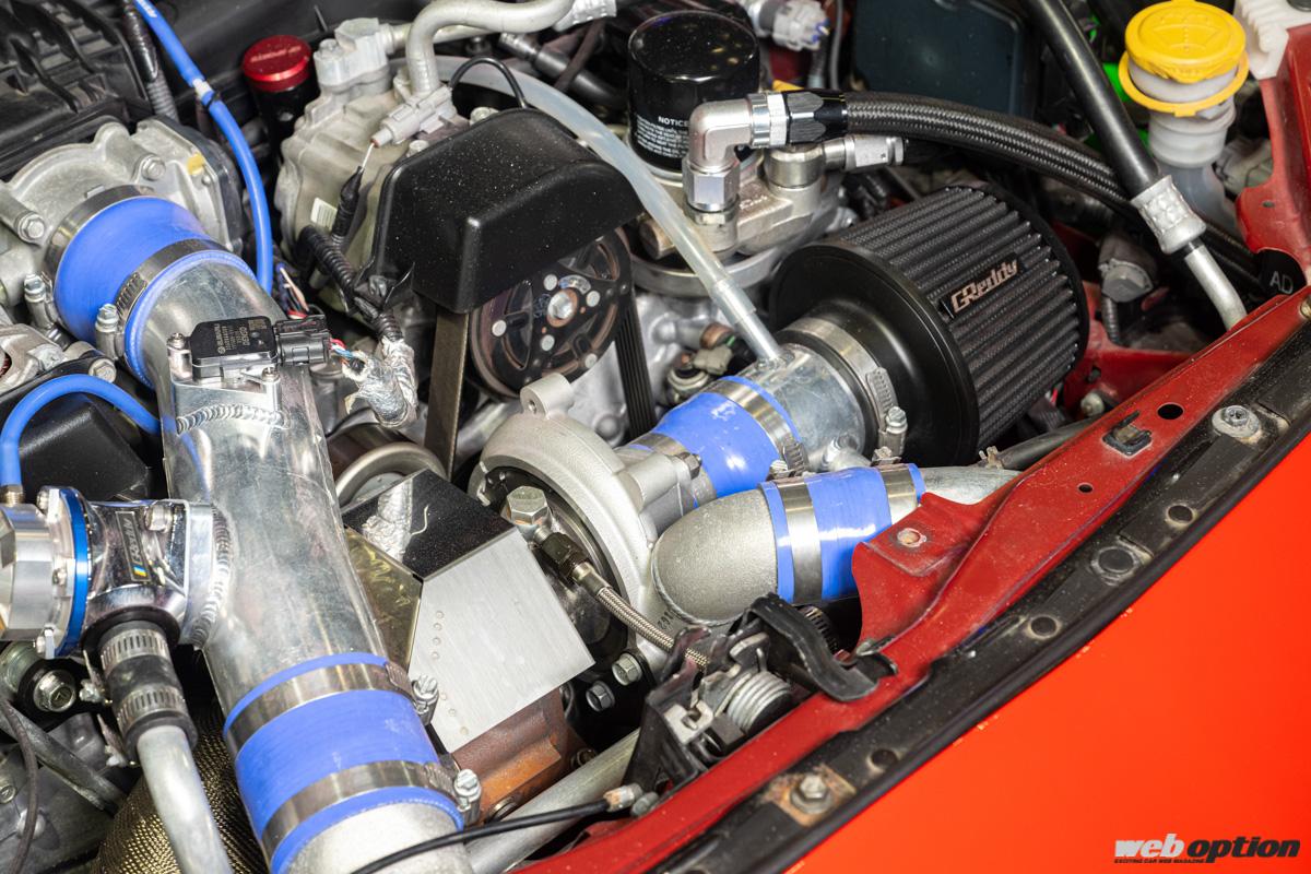 まずは、FA20過給機チューン対応のエキゾーストシステム。「ポン付けターボキットを装着したユーザーでもマフラーはNAのまま、という場合が意外と多い。そんな容量不足を解消するために、径の大きい専用マフラーを製作しました」とはGPスポーツ森代表。