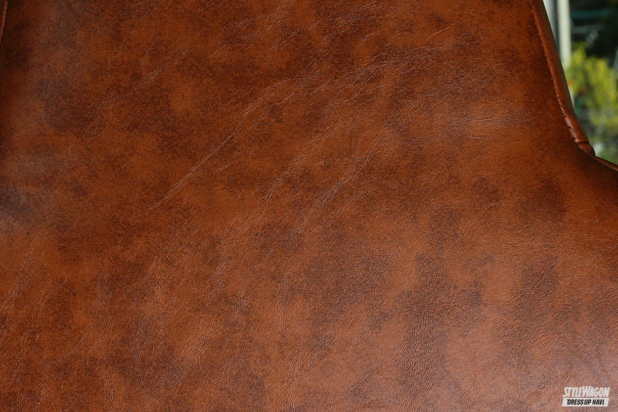 中央の生地はオリジナルで、織り物に往年のチェック柄をプリントしたもの。周囲には柄の入ったアメリカン風のヴィンテージレザーを組み合わせていて、その雰囲気はまさにオールドスクール。織り物独特の風合いも手伝い、実にオシャレな空間を演出してくれる。