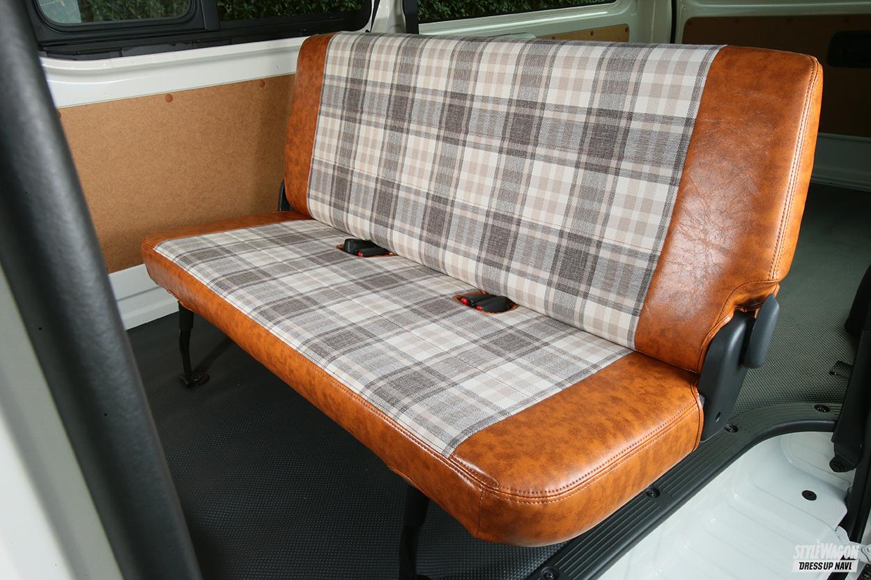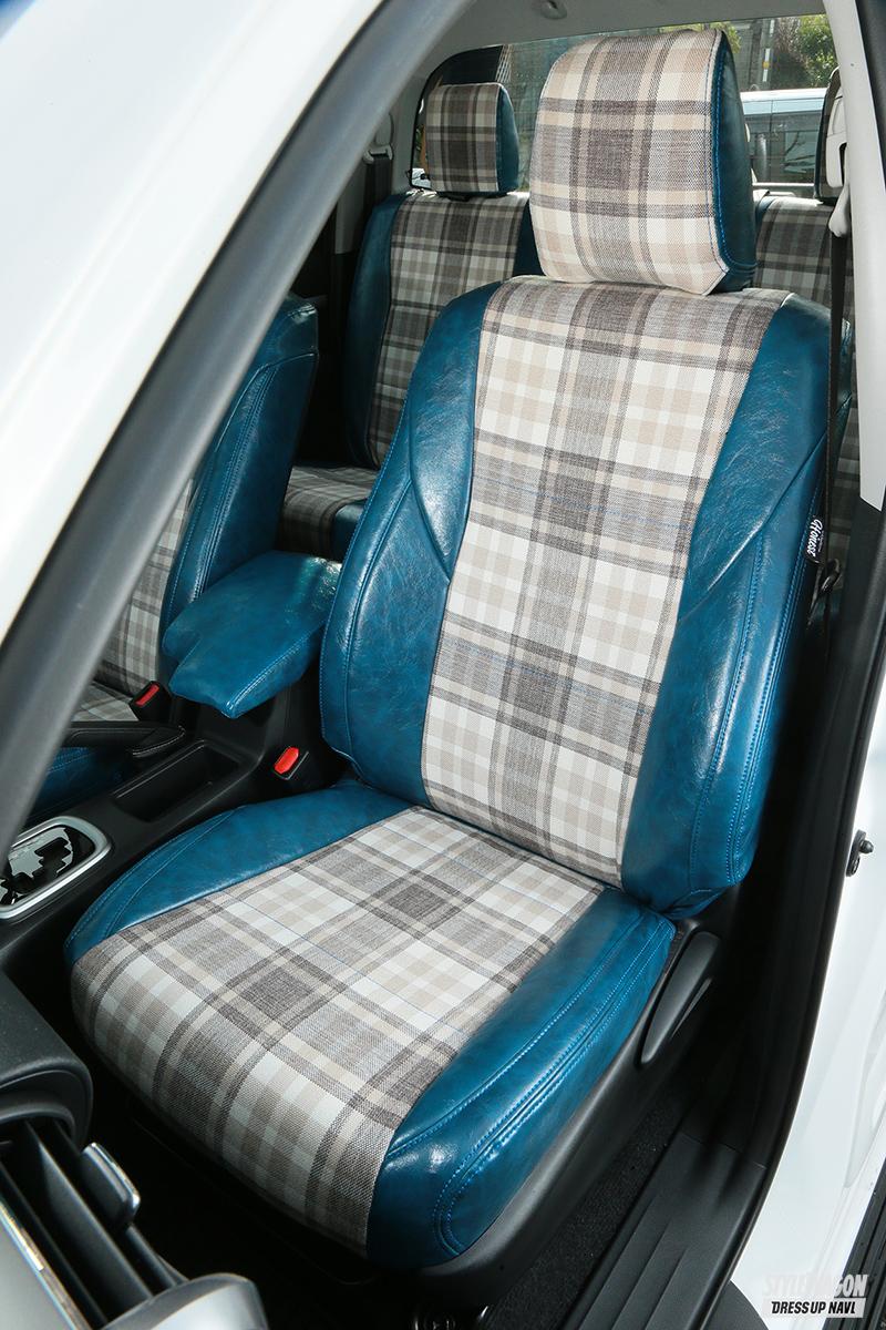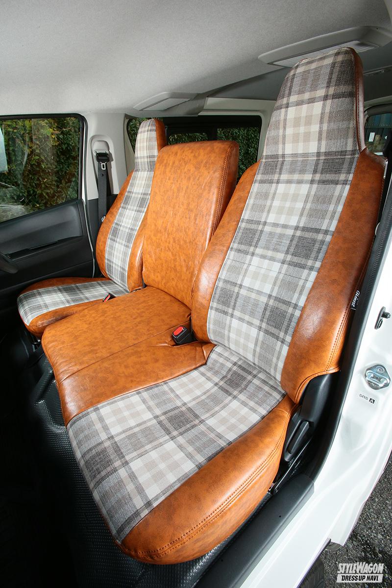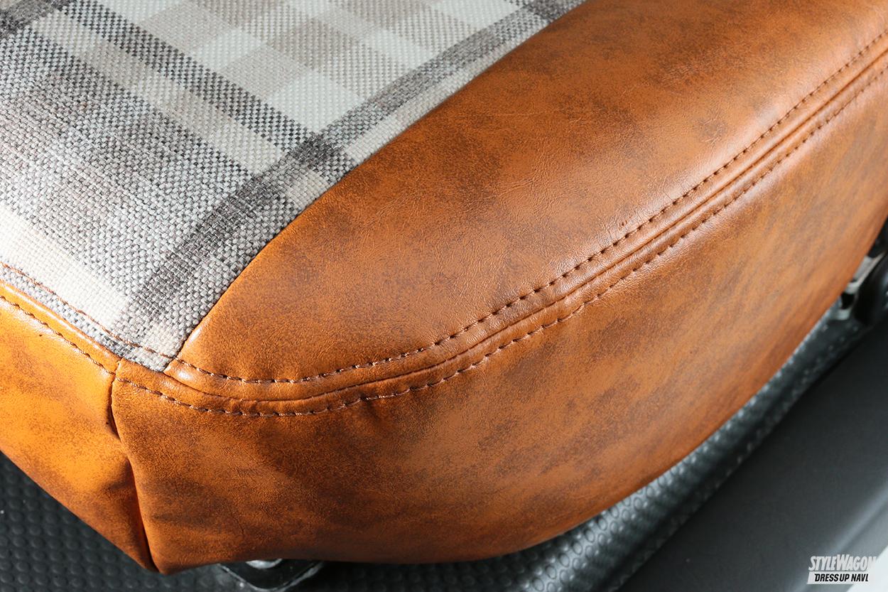 独創的なハワイアンルックで独特の世界観を作り出す実力派、オネストでは、チェック柄×ヴィンテージレザーで内装を張り替えたシボレーのシェビーバンを、デモカーとして製作していた。けれども張り替えではコストもかかるため、何とかそのテイストをより多くの人に気軽に楽しんでほしい、とシートカバーの開発に着手。シートカバーの名門、ベレッツァとのコラボによって、このアイランドヴィンテージは完成したのだ。