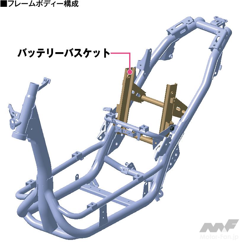 ちなみにそのスペースには灯火や補機類用の12V鉛バッテリーとPCU(パワー・コントロール・ユニット)が搭載されている。
