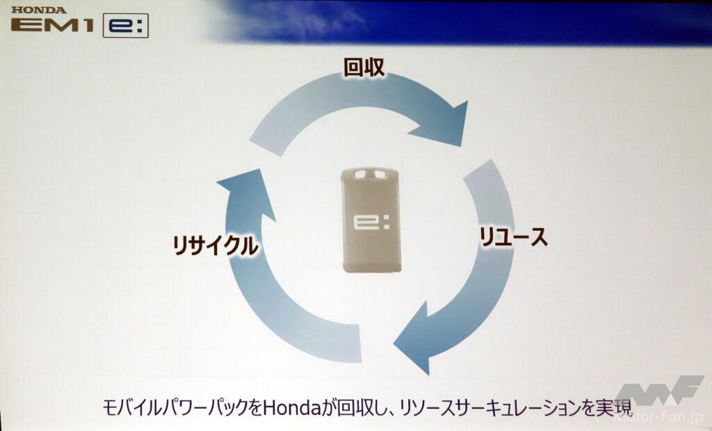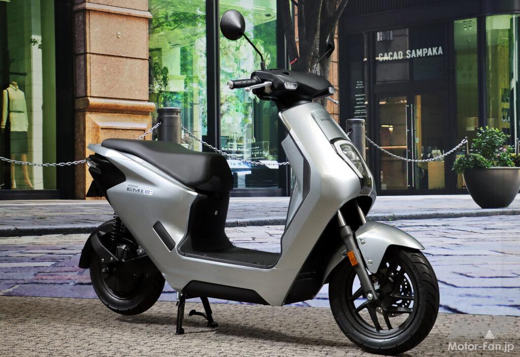 冒頭の写真は、左から順に室岡克博(ホンダモーターサイクルジャパン代表取締役社長)、後藤香織(本田技研工業・電動事業開発本部・EM1 e開発責任者)、石見英昭(ホンダモーターサイクルジャパン営業部部長)が顔を揃える。