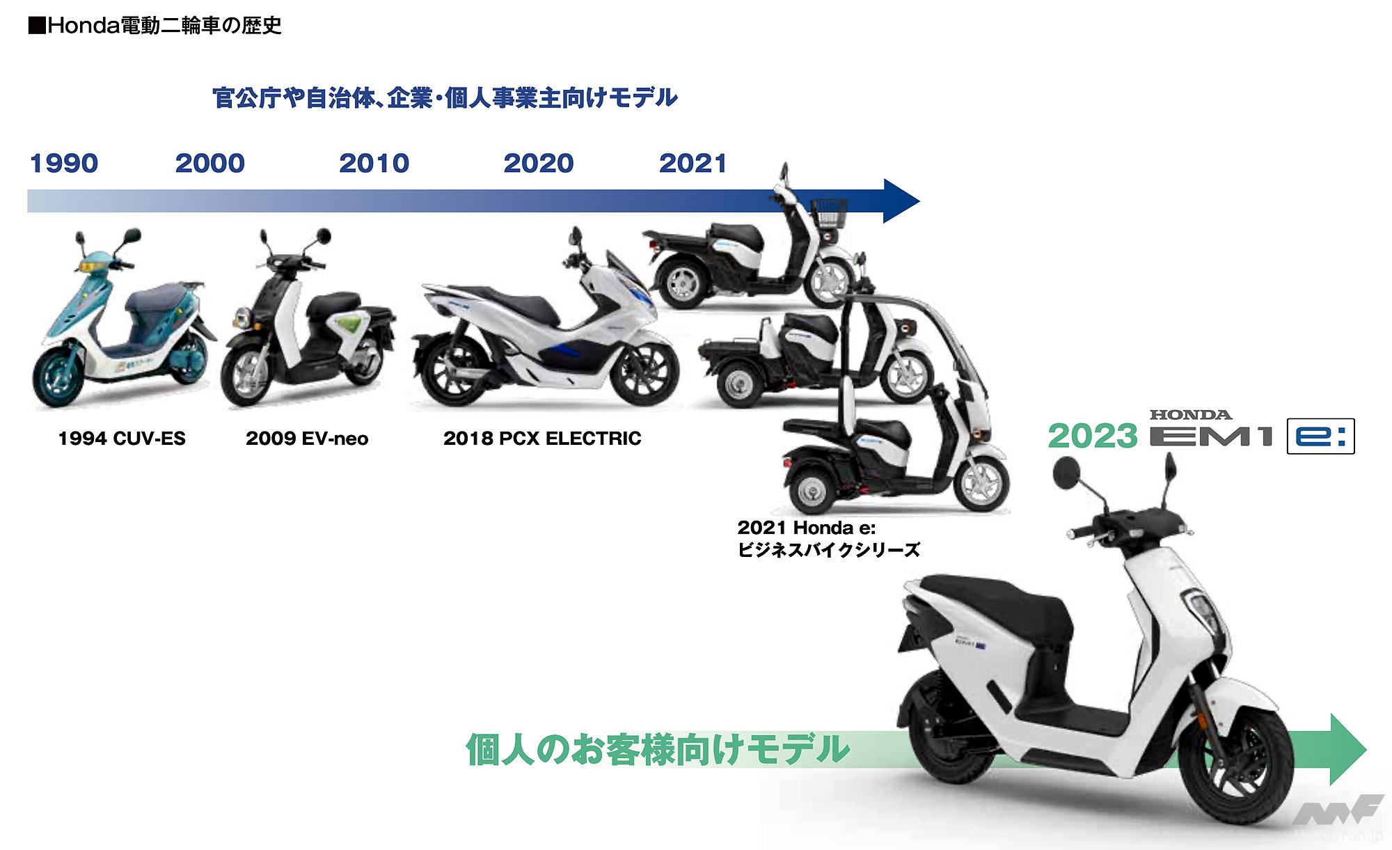 ホンダにとって、電動二輪開発の歴史は、1994年3月にデビューしたCUV ESに始まっているが、最近はビジネス用への電動モデルを積極投入。BENLY eが日本郵便に大量納入されている話題はまだ記憶に新しい。
