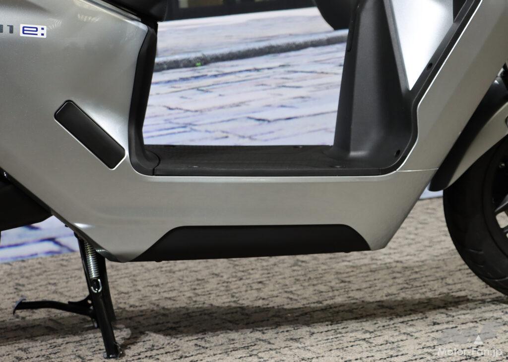 フラットなステップスルー式フロアデザインを採用。フロア長は330mm。フロア下にPCU(パワー・コントロール・ユニット)や補機類用の12Vバッテリーが納められている。
