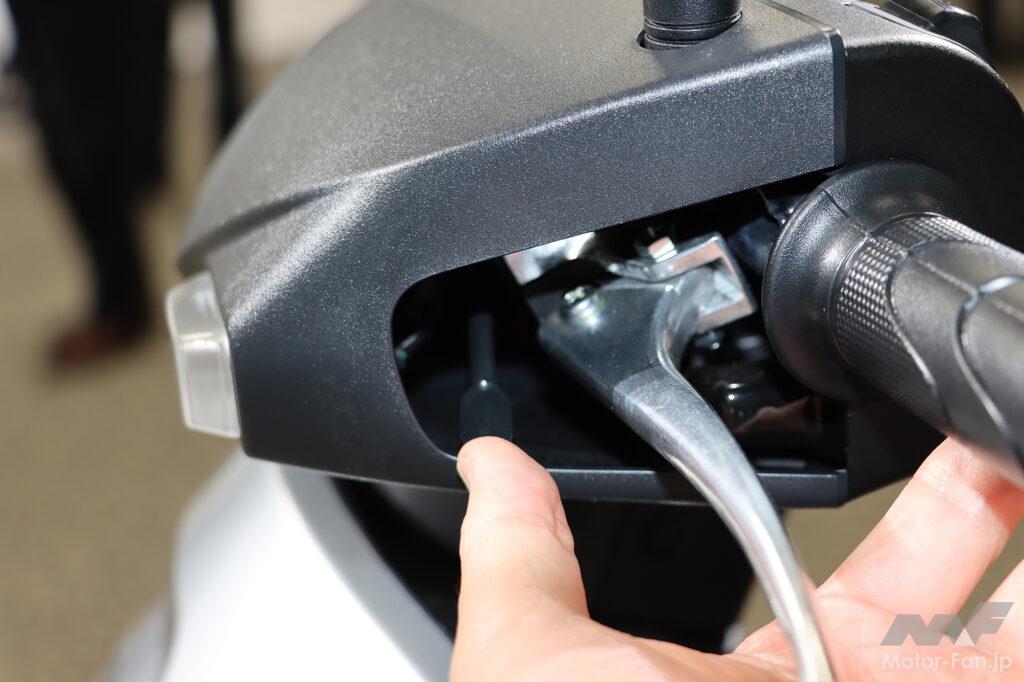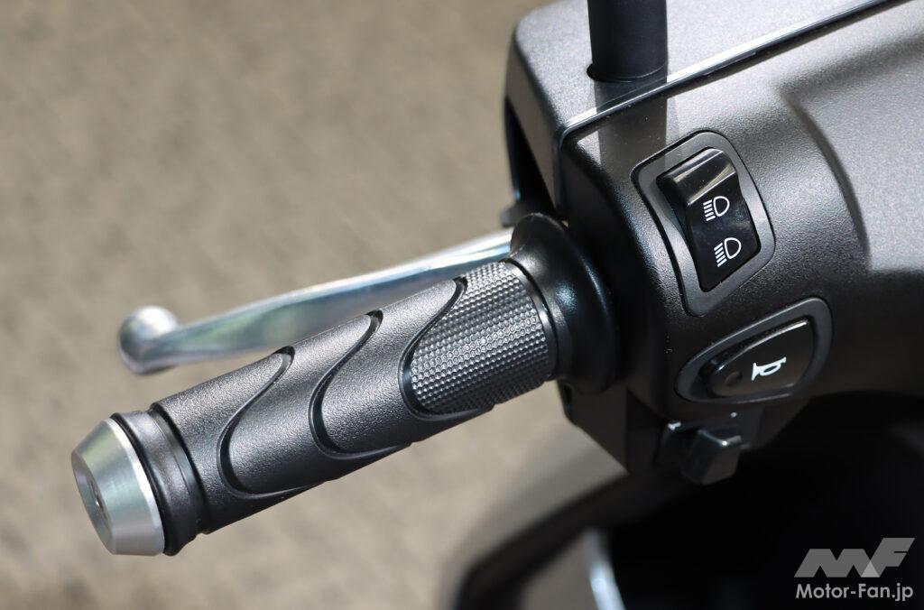 車(ハンドル)幅は680mm。全体に小さすぎることのない、車格感を覚える。原一スクーターとして一般的。