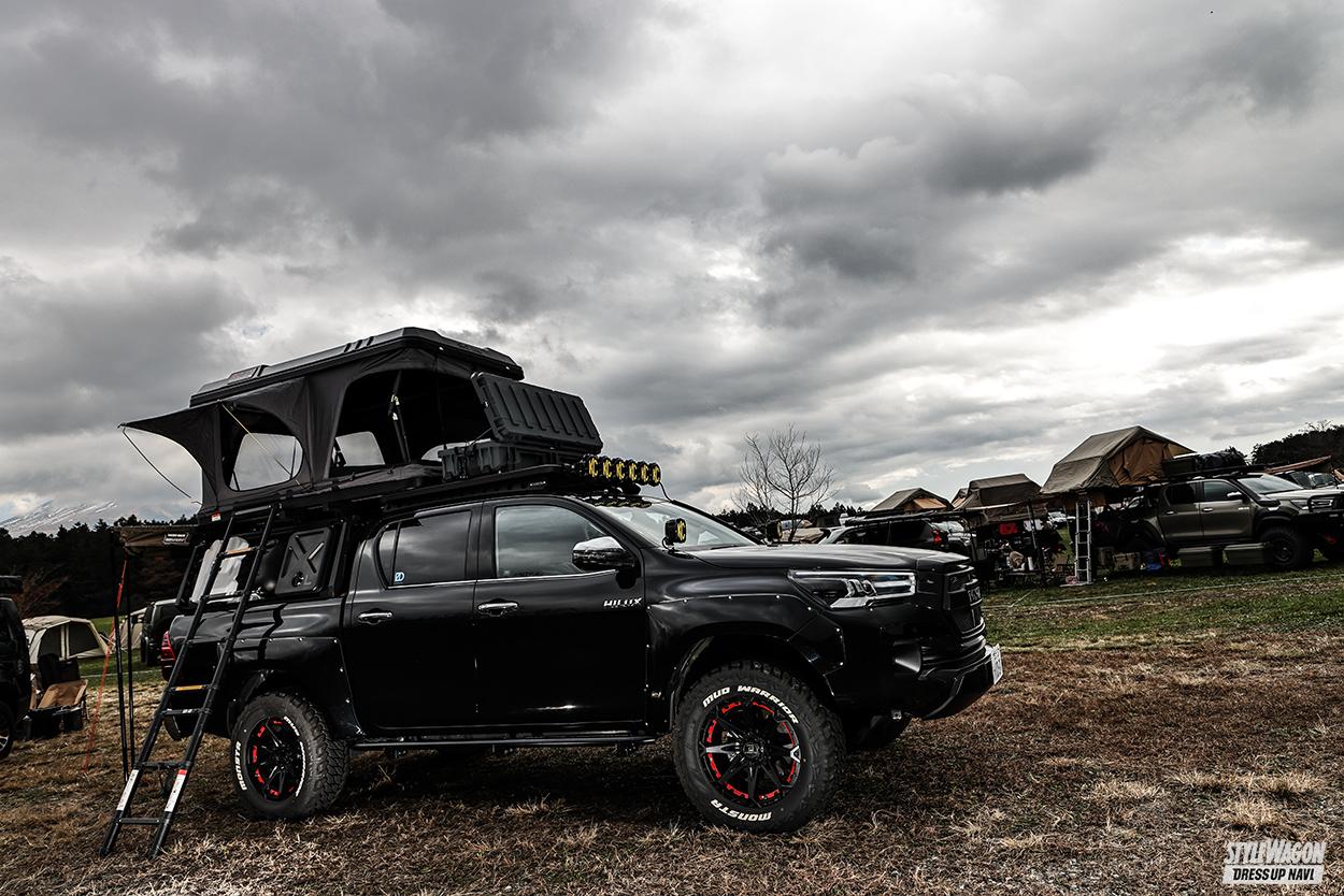 数々の名のあるブランドを日本に紹介するエクシズルライン。オフロード、オーバーランド関連アイテムの取り扱いが豊富なのも有名だ。ここで紹介するハイラックスは、様々な海外ブランド、そしてオリジナルブランド、リヴァイオフロードのアイテムで仕上げていて、それこそオーバーランドを志向するユーザーに最適な1台となっている。