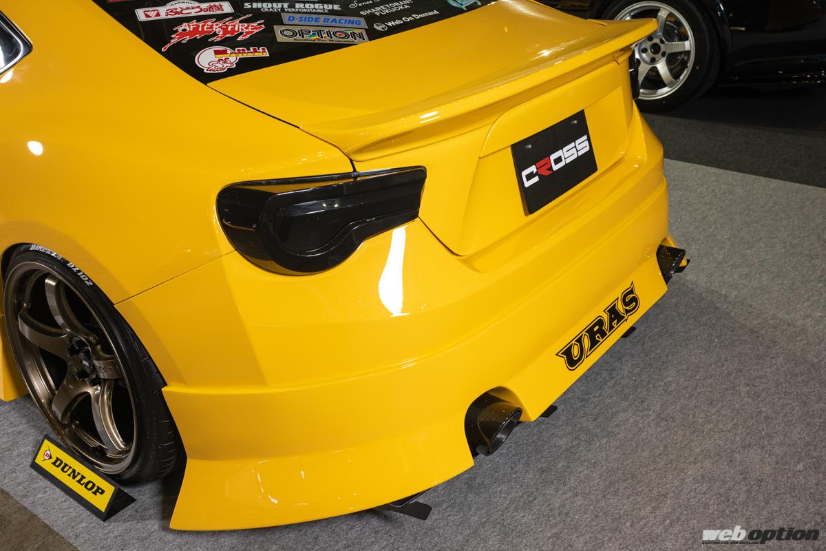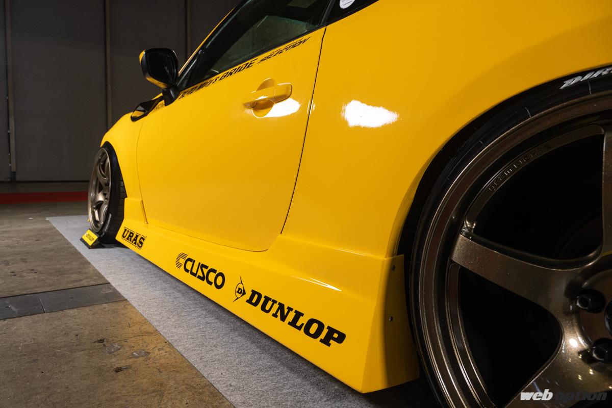 ただし、当時のテイストをそのまま再現するのではなく、令和に合わせてアップデートしているのもポイント。『エアロで車高を低く見せる』ことが主流だった当時と比べて、調整式アームや車高調の進化により車体そのものの車高も低くなっているため、それに対応すべくバンパー下部の路面とのクリアランスをなるべく大きく取れるように設計したそうだ。