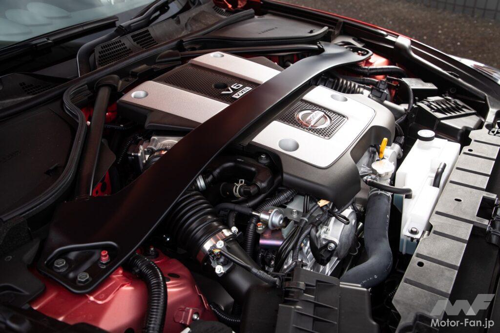 エンジンは先代のV型6気筒3.7L自然吸気から、スカイライン400Rにも搭載されているV型6気筒3.0Lツインターボ「VR30DDTT」に変更され、405ps、475Nmのパフォーマンスを誇る。トランスミッションは6速MTか新開発のパドルシフト付9速ATを選択することができる。