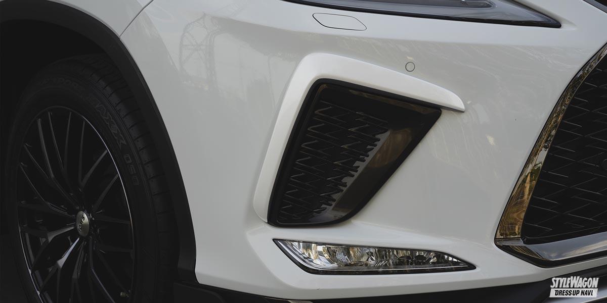 パーツ 【レクサス・RX450h】52ミリ増のオーバーフェンダーで、貫禄十分なチューナーズスタイルへ【写真・7枚目】 フロントディフューザーは純正バンパーの底に追加するハイエッジな逸品。3D感、ワイド感、そしてロワード感が強い、Fスポーツ専用エアロだ。 フロントからの流れを巧みに継承し、ボディサイドを一段とスポーティに彩るディフューザー。末端部にカナード風のフィンが付く。 TOM'S 純正バンパーにある左右のダクト縁に貼り付けるガーニッシュは、あるとないでは雲泥の差といえる。純正ラインに沿って貼り付けるL字型で、エッジが強まり、見た目のワイド感も必然的に高まる。全車対応。 TOM’S 物足りなさの残るバックドアのアクセントとなるトランクリッドスポイラー。取り付けに新規の穴開けは不要で、両面テープを使って単純に貼るだけで楽しめる。あえてブラックアウトして存在を強調するのもあり。 この画像の記事を読む