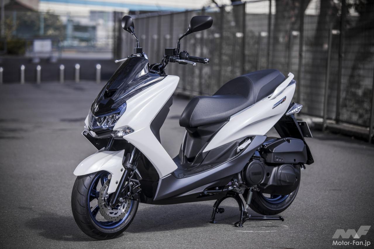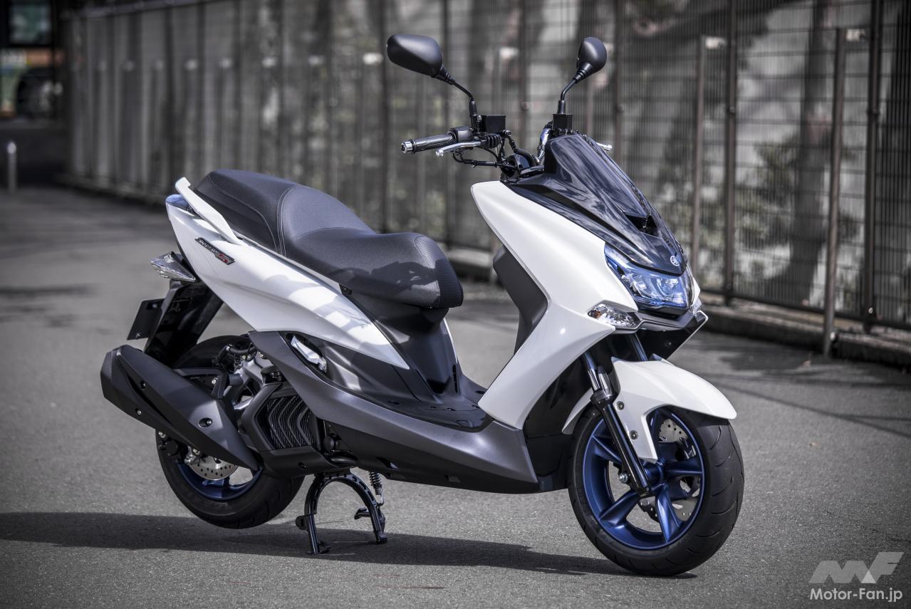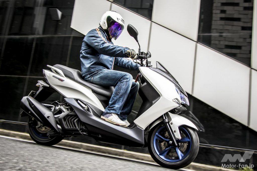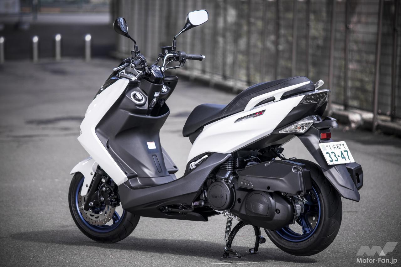 ハンドリングについては、前後タイヤはマジェスティS用に専用開発された台湾製のマキシスR1Nで、フロントが120/70-13、リヤが130/70-13サイズ。接地面積の大きなハイグリップタイヤが、低速時の機敏な動きと、高速時の安定感の両立につながっている。