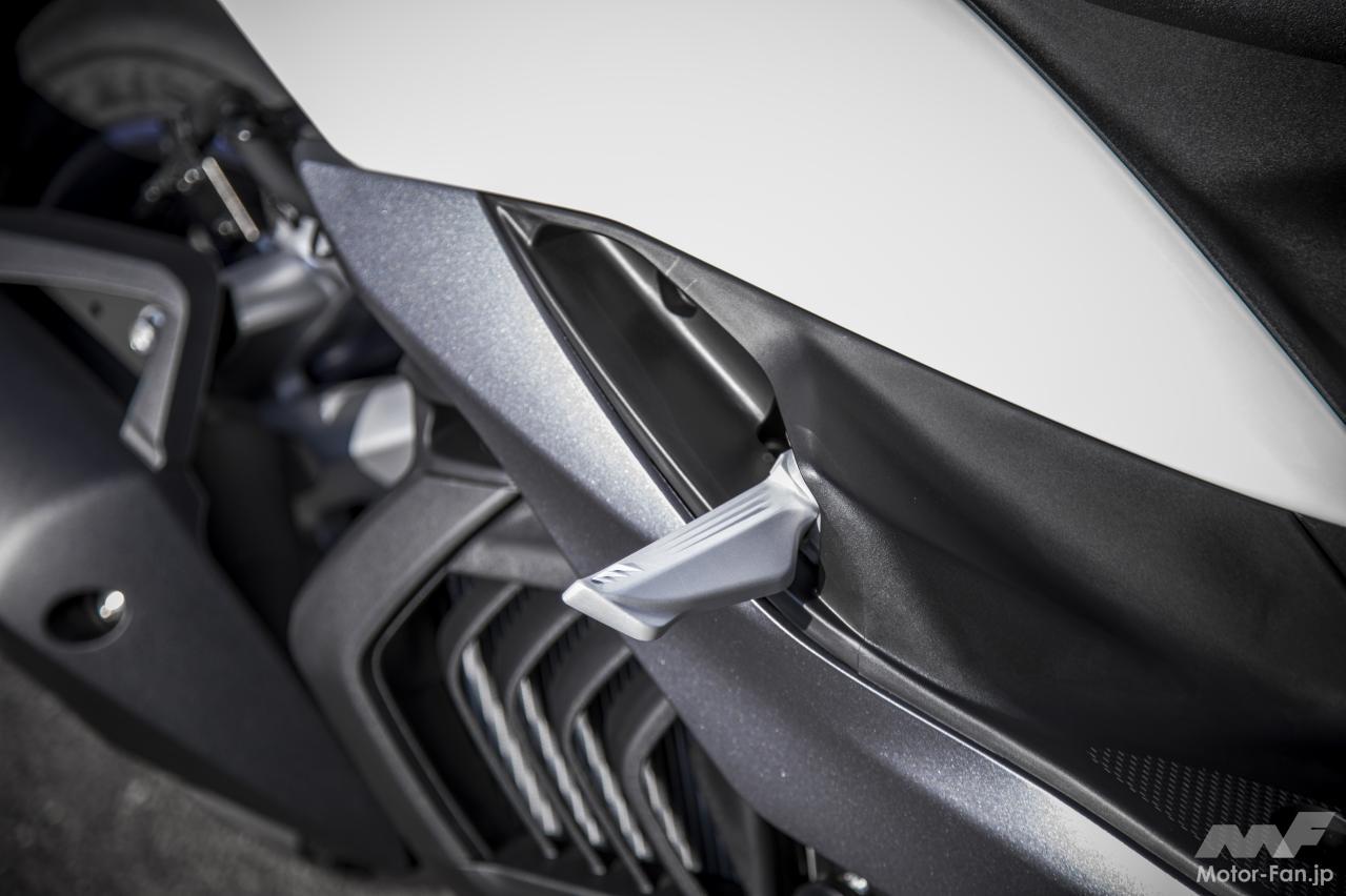 握りやすい細身のグラブバーは、タンデム時にパッセンジャーの疲労軽減と安心感につながり、センタースタンド使用時にも役立つ。また、駐車位置の微調整もラクに行えるので好印象だ。