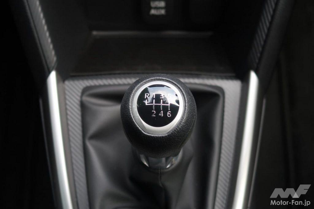 トランスミッションは6速MTのみの設定である。パーキングブレーキが電動ではなくて引き上げレバー式なのはモータースポーツベース車だからはなく、装備が充実した15S PROACTIVE S Packageも同じだ。つまり、全車共通である。