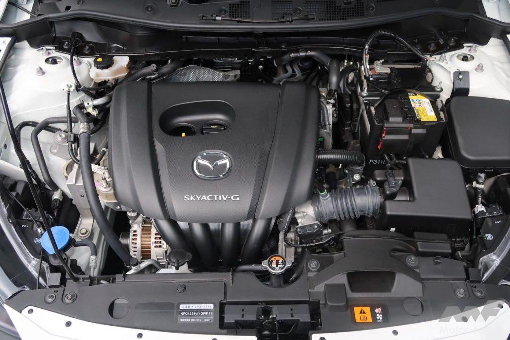 形式:直列4気筒DOHC 型式:P5-VPS(SKYACTIV-G1.5) 排気量:1496cc ボア×ストローク:74.5mm×85.8 mm 圧縮比:14.0 最高出力:116ps(85kW)/6000pm 最大トルク:149Nm/4000rpm 燃料供給:DI 燃料:無鉛プレミアム 燃料タンク:44ℓ