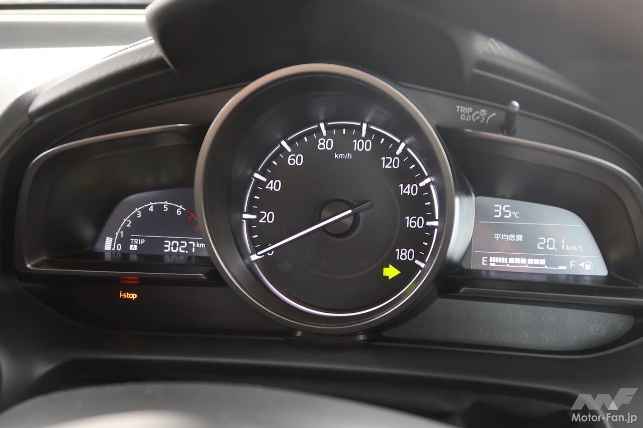 マツダ2のメーターは中央に大型のアナログメーターを置き、その左右にデジタルの表示部を設けた構成となっている。PROACTIVEより上のグレードは中央のアナログメーターがエンジン回転計になっているのだが、15MBは下位グレードの15Cや15Sと同じで中央が速度計となっており、左側のデジタル表示部にエンジン回転数がこぢんまりとアナログ表示される。「真ん中にエンジン回転計が欲しいんだけどなぁ」と感じ続けた試乗期間であった。エンジンをぶん回して走るのが、15MBの最大の楽しさだからだ。