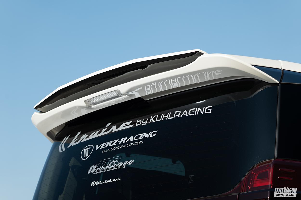 30後期ヴェルファイアZGをベースに、クールのエアロシリーズ「クルーズ」をフル装着し、ACCのエアサス「オンザグラウンド」で限界までローダウン。大きくコンケイブするクールの鍛造ホイール「ヴェルズレーシングVRF02」と相まって、シンプルなのに迫力があって個性的という、独自のスタイルを完成させている。オーナーのたけさんによれば「以前も同じ30後期ヴェルファイアに乗っていて、さあカスタムするぞ……という時に事故ってしまったため、まったく同じグレードを再購入しクールでカスタムしました」とのこと。クルーズシリーズを選んだのは「エアロが小ぶりでシンプル。リアはマフラーが4本出しなのもポイントでした」という理由。足まわりは、20×9.5J+20(255/30)を入れてガッツリ落とすため、エアサス+アーム類交換も実施。F5度、R8度のキャンバーを付け現在のスタイルを確立。今後の予定を尋ねると「アルファイア(ヴェルファイアのアルファード顔)にしたいなと思っていて、あとはブレーキのビッグキャリパー化をしたいですね」と、たけさんのカスタム魂はとどまることを知らないのだった。