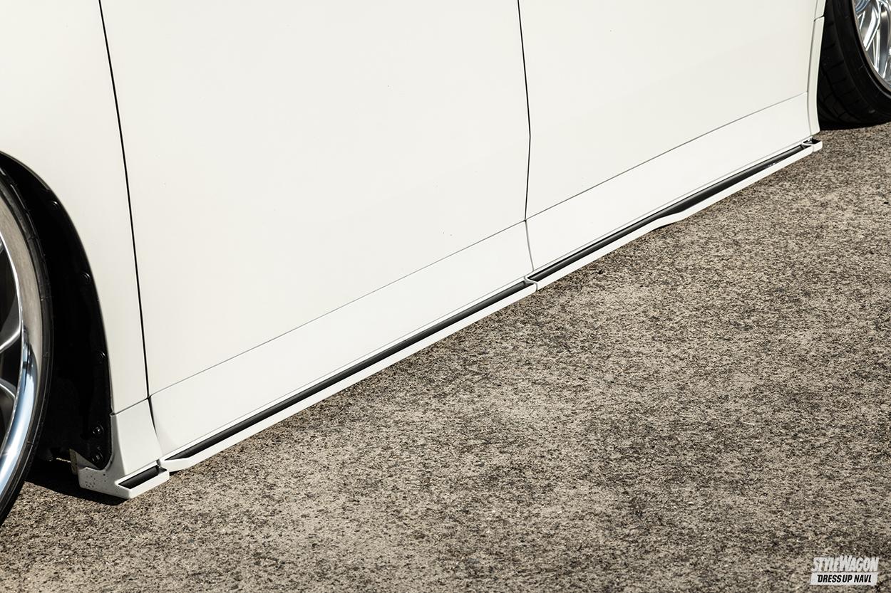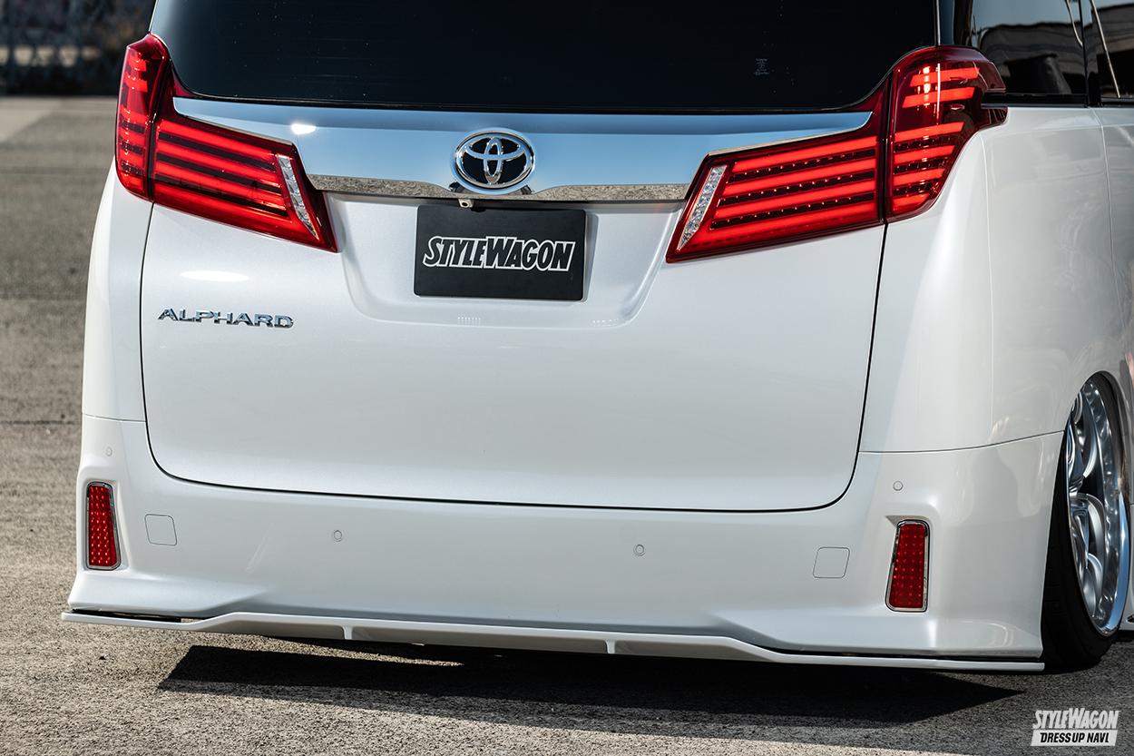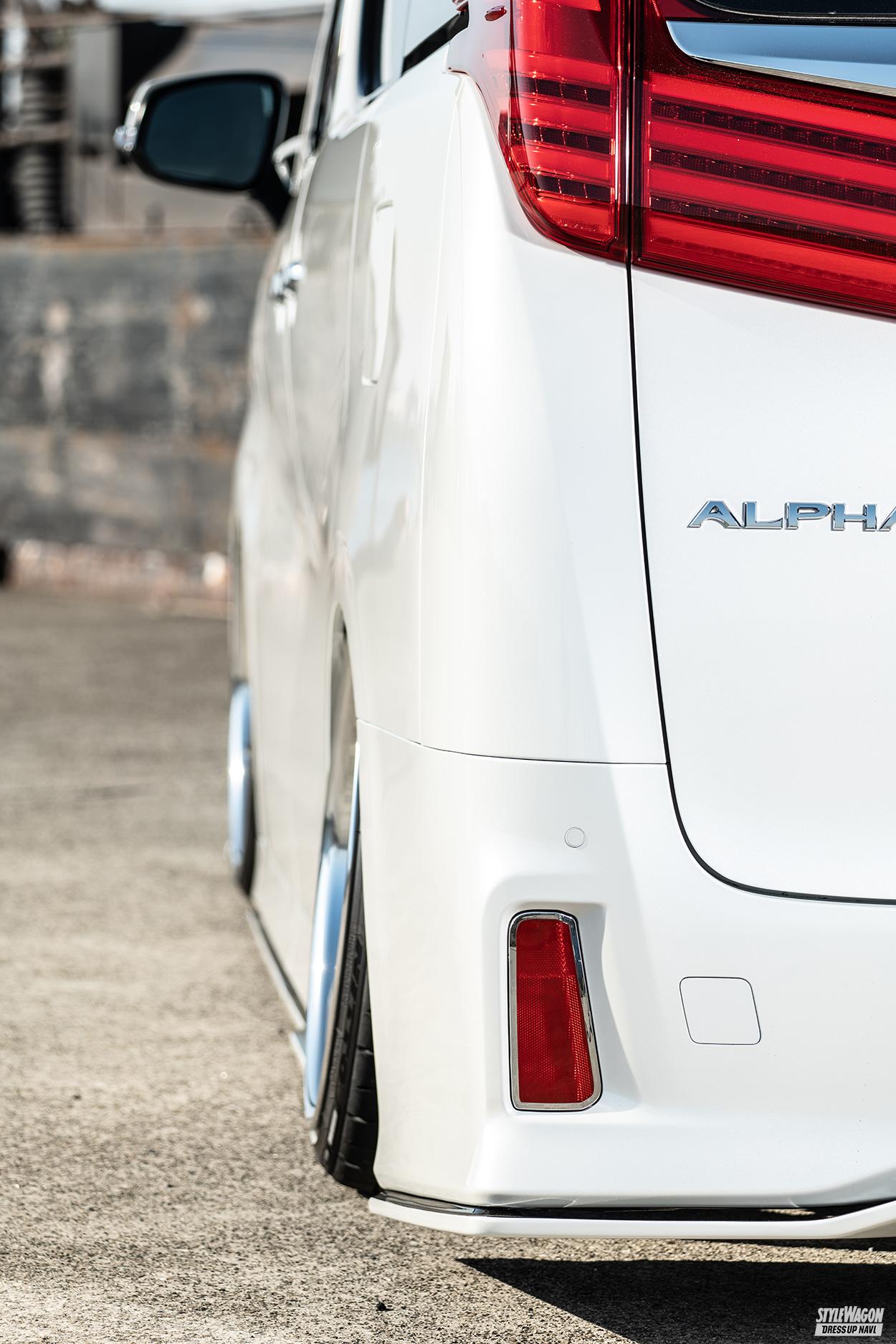 もともとは奥様のみかさんがクルマ好きで、その影響でダンナさんのひろさんもクルマに詳しくなったというご夫婦。メインで乗るのは奥様で、30後期アルファードも実は2台目。初代は「低いまま走りたい」という奥様の意見で車高調だったのだが、「エアサスの方が乗り心地がいい」という気持ちの変化でクルマごと乗り換え。同じグレードのアルファード、エアサス仕様&アーム類変更で現在に至っている。エアロはすべてクールで、フロントのみRS2、あとはRS1をチョイス。フロントのメッキ部分を減らすコーナーカバーとフォグパネルガーニッシュも装着。足まわりにこだわりながら「大人シンプル」をコンセプトにしたカスタムを追求するご夫婦のアルファードだ。