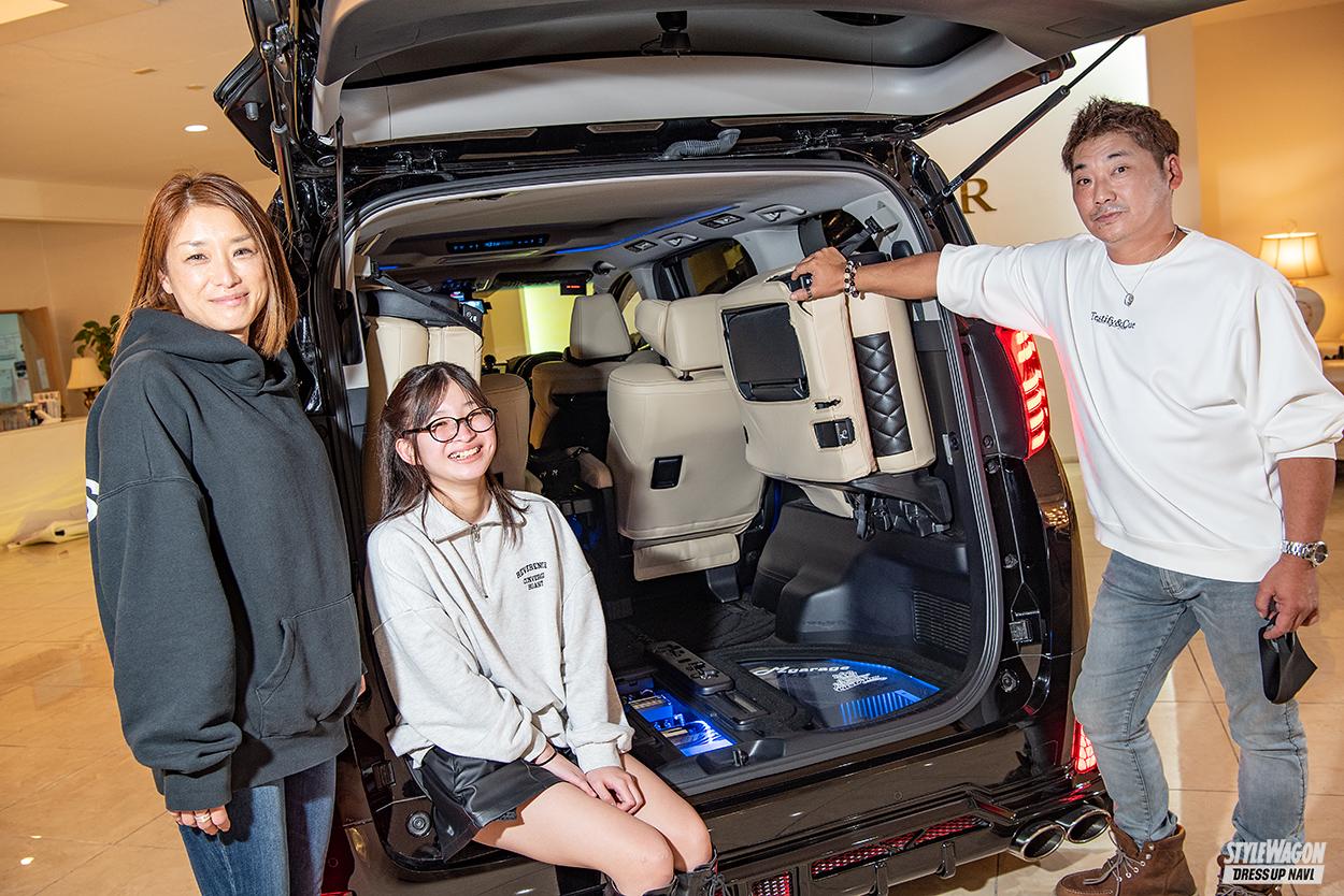 「ファミリーカーとしてどこまでいじれるかがテーマです」と話す根本さんのアルファードは、エムズスピード仕様のコンプリートカーがベース。ミーティングなどで他のクルマを見ているうちに、イベント仕様までグレードアップした。