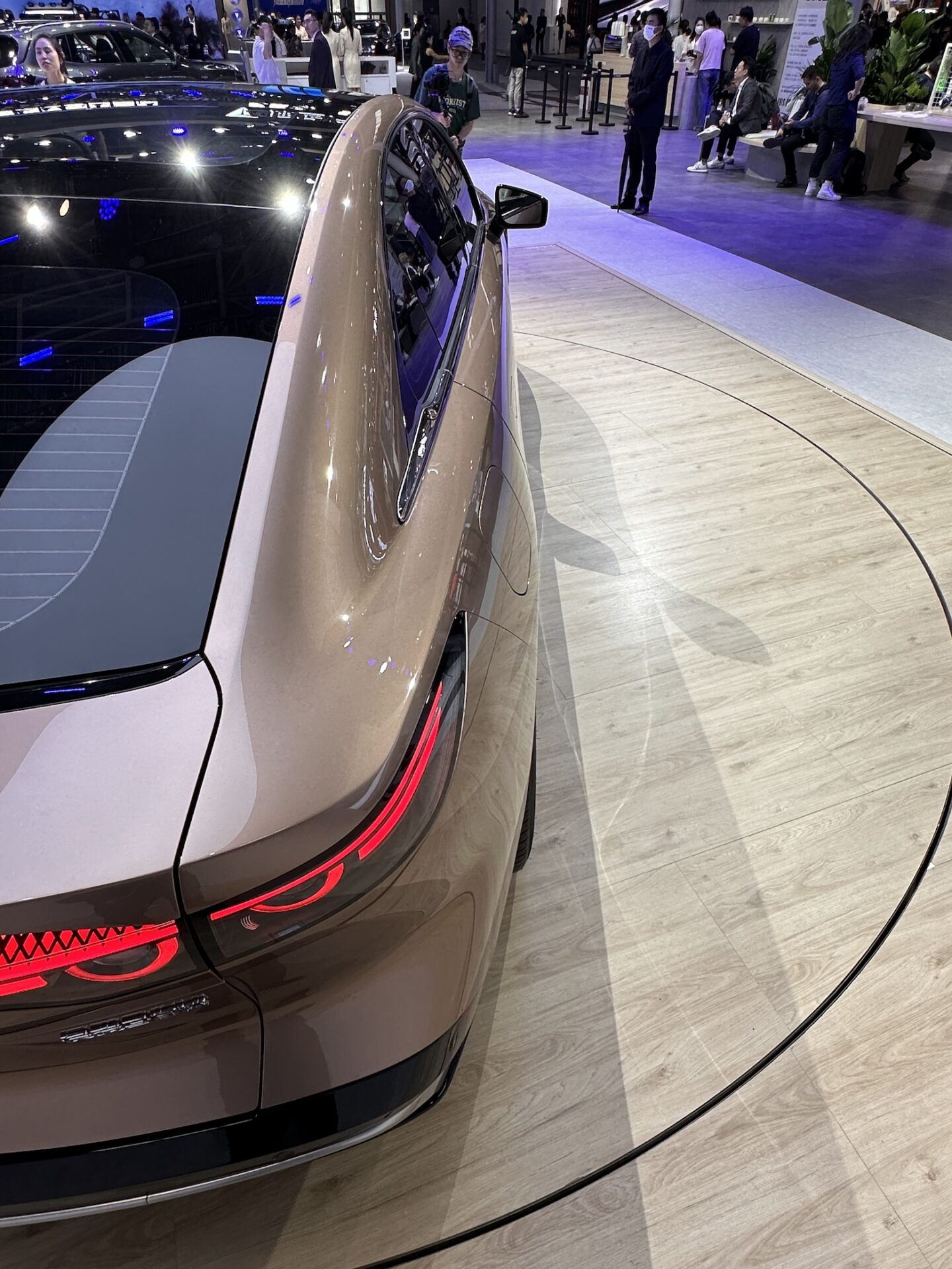 ただし今回はあくまでも会場の中で照明に照らされた印象であることを断っておく。早く外光で見てみたいし、そして実際に走る姿がどのように見えるのか高速道路上でも見てみたいと思っている。また大らかで豊かな表現の、メッセージの強い造形の多い中国EV車たちのなかで、どれだけアピアランスがあるのかを、それらを市中で実際にさまざまなクルマたちの中に入り込んだ状況で確認してみたい。