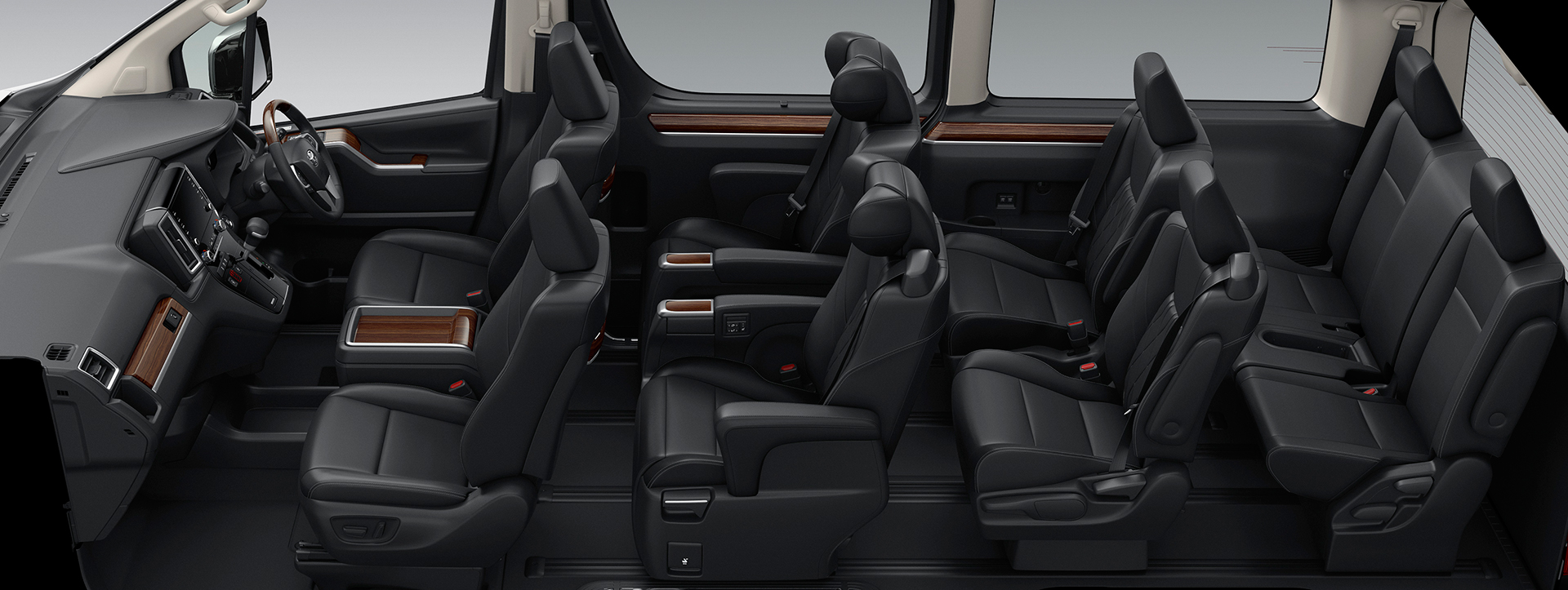 2019年12月に登場したグランエースは、ハイエースのような広大空間を持ちながら、アルファードのようなミニバンの快適性を兼ね備えたビッグサイズ高級ワゴン。2グレード設定で、3列6人乗りの「プレミアム」の2列目はオットマンや快適温熱シートが備わるエグゼクティブパワーシートを採用。3列目も快適なキャプテンシートとなる。4列8人乗り「G」の2列目は、リラックスキャプテンシートとなり、操作性にも優れたシート調整機能などを備え広々快適に着座できるのが美点だ。