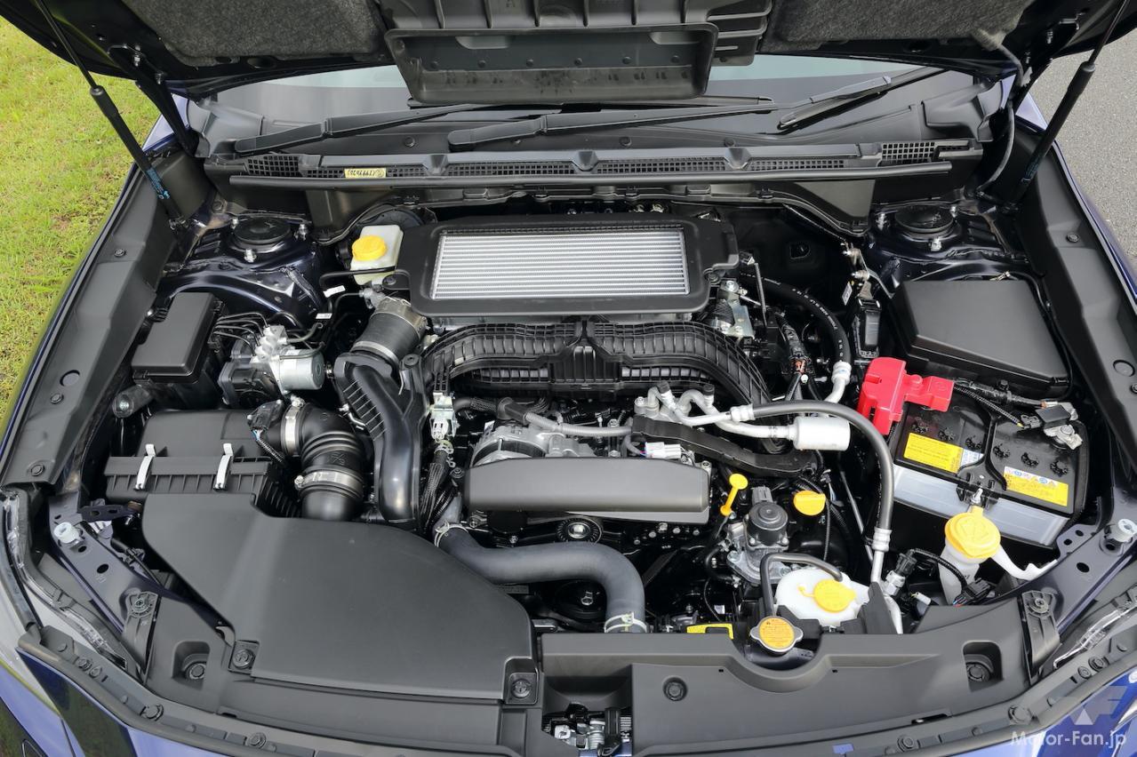 写真:エンジン形式:水平対向4気筒DOHCターボ エンジン型式:CB18 排気量:1795cc ボア×ストローク:80.6mm×88.0mm 圧縮比:10.4 最高出力:177ps(130kW)/5200-5600rpm 最大トルク:300Nm/1600-3600rpm 燃料供給:筒内燃料直接噴射(DI) 使用燃料:レギュラー