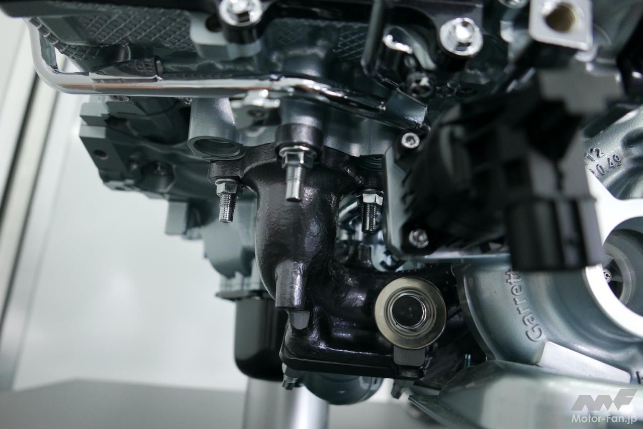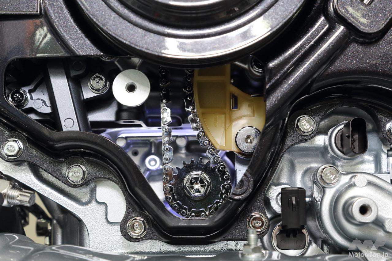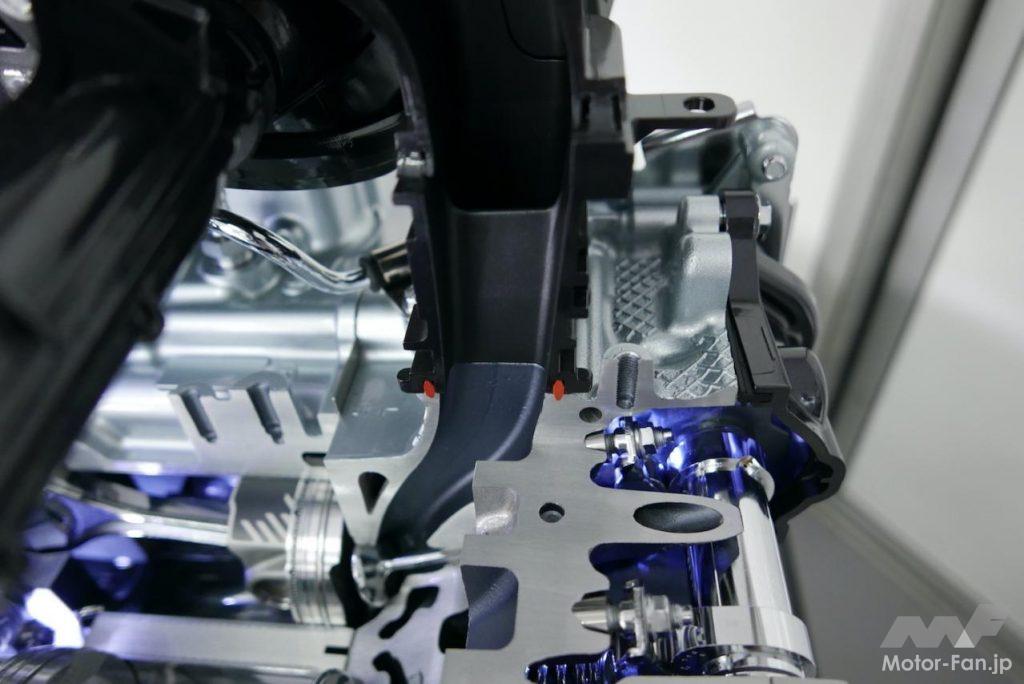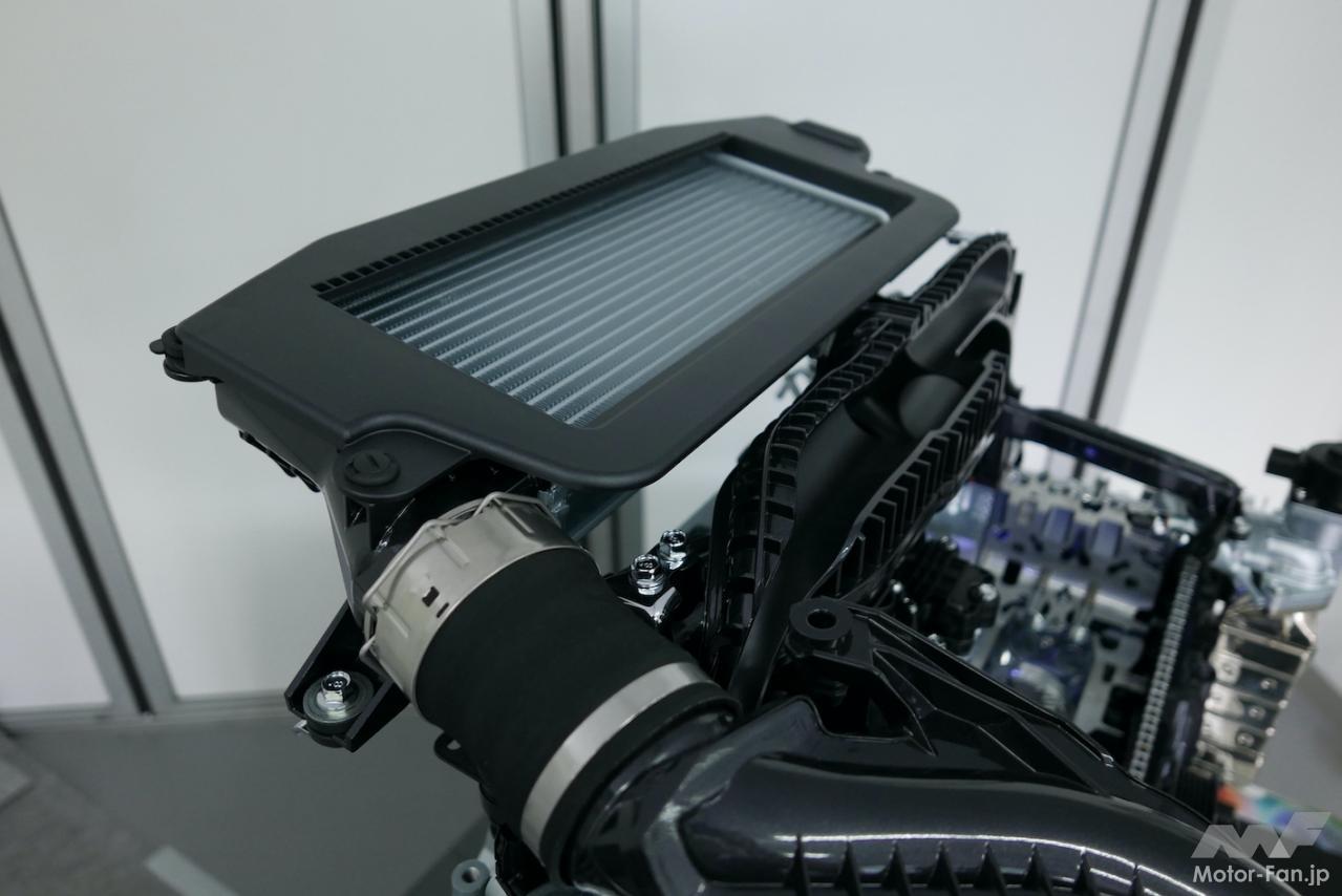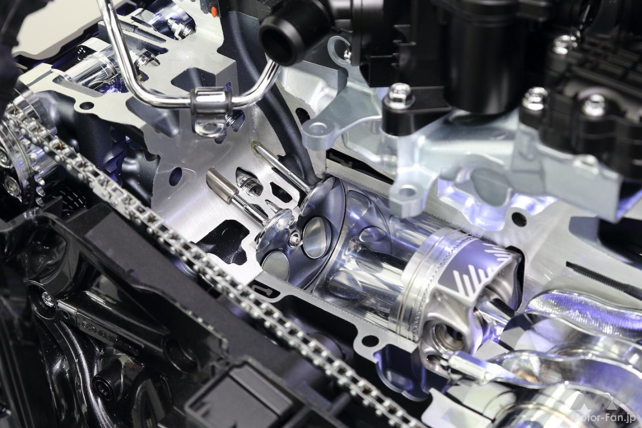 着いた火を消さないように制御するのは、基本的にシリンダー内の空気の流れ(タンブル流)を強化することで対応したという。S/B比(ストローク/ボア比)をロングストローク化することで吸気流速が高まったため、タンブル・ジェネレーターバルブは新型では廃止された。