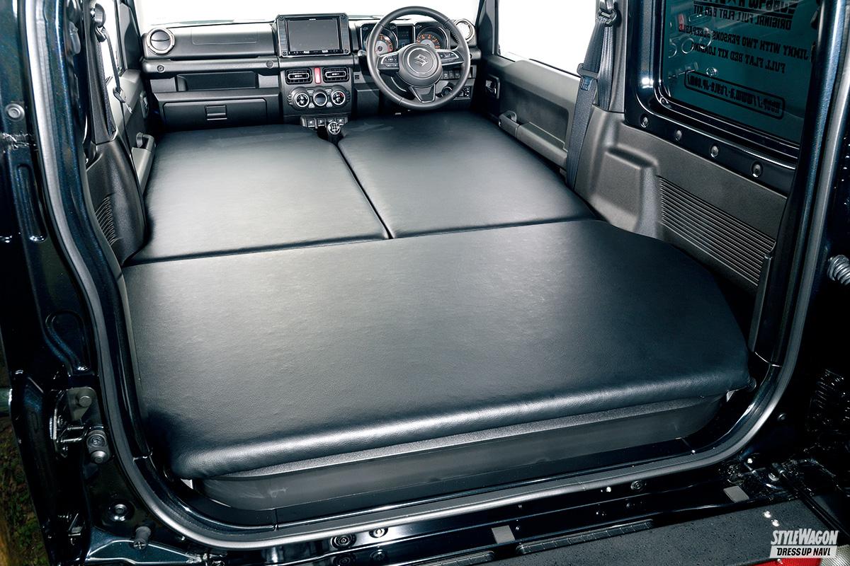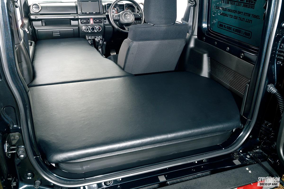 エースタイルのベッドキットは、ジムニーで車中泊したいというオーナーに好評。