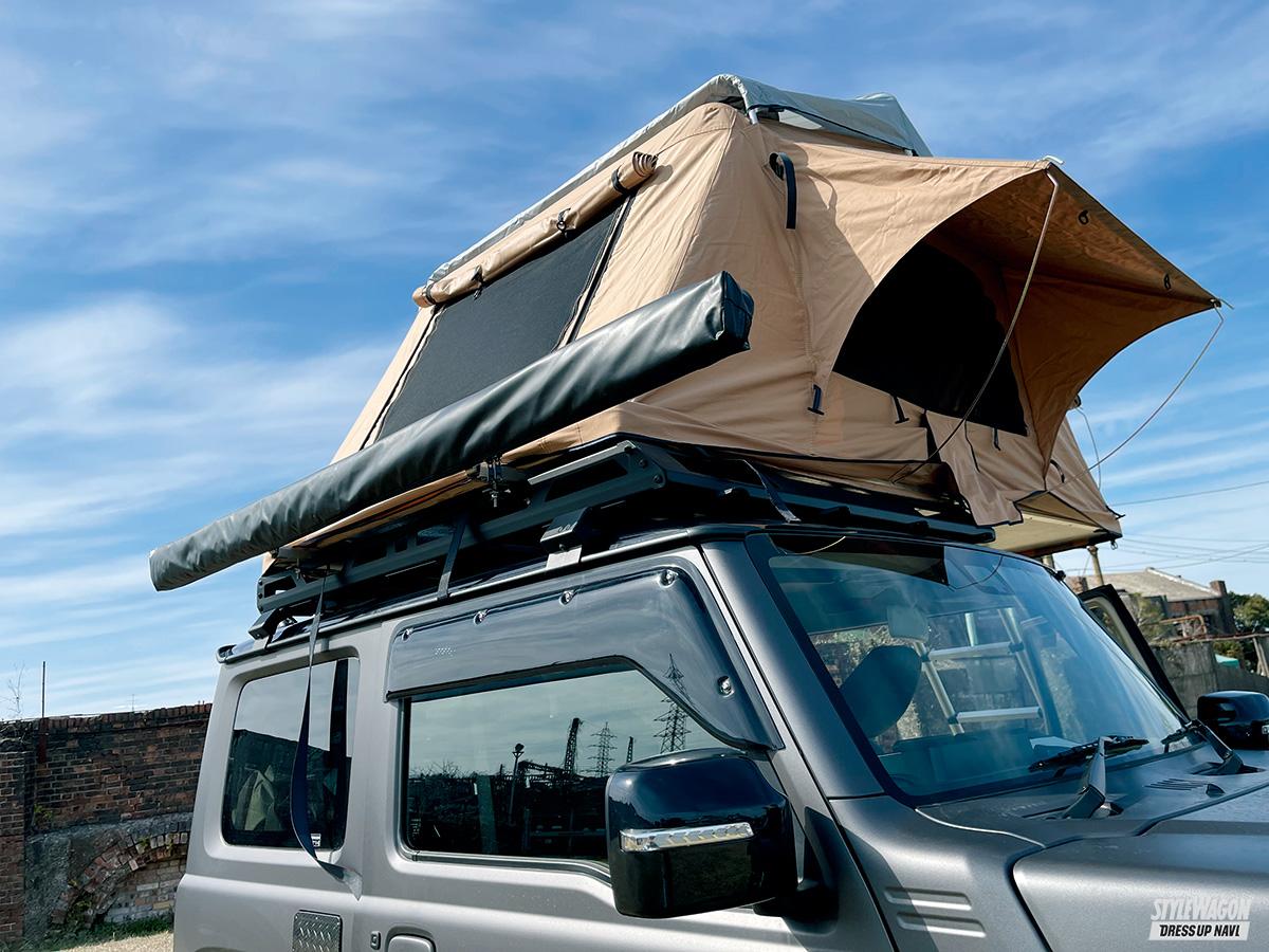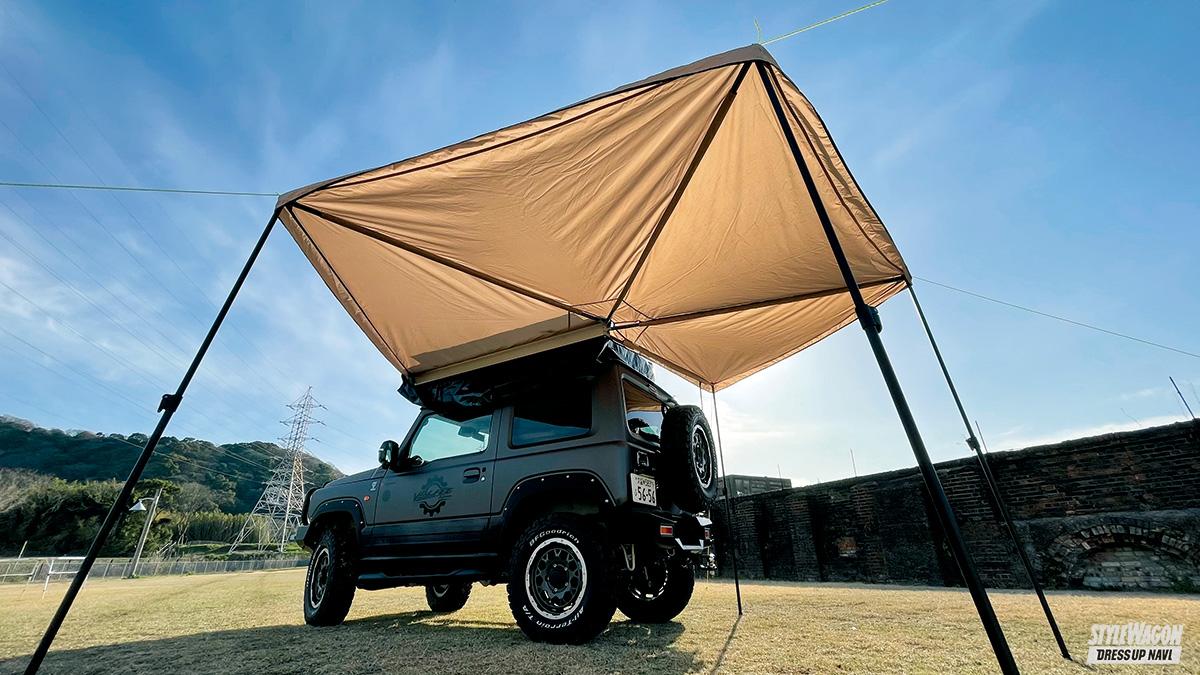例えばジムニーに4人乗ってキャンプに出かけて、寝る時は車内に2人、テントに2人という使い方ができるのだ。