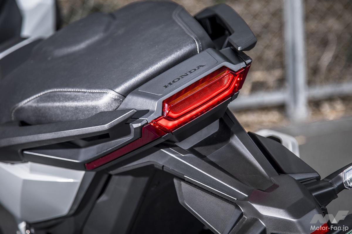 X-ADVは既報の通りNC(ニューミッドコンセプト)のメンバーに追加投入されたモデルで、基本設計はバイクとして開発されている。それをベースに、外観デザインと機能性にスクーターらしい利便性が加味されているのが特徴的。斬新かつ異色な存在と言える。
