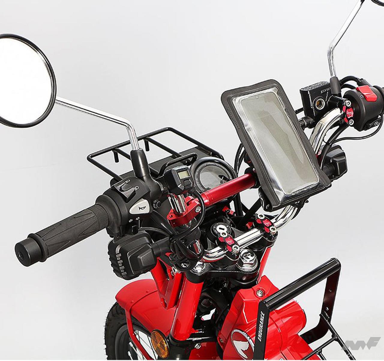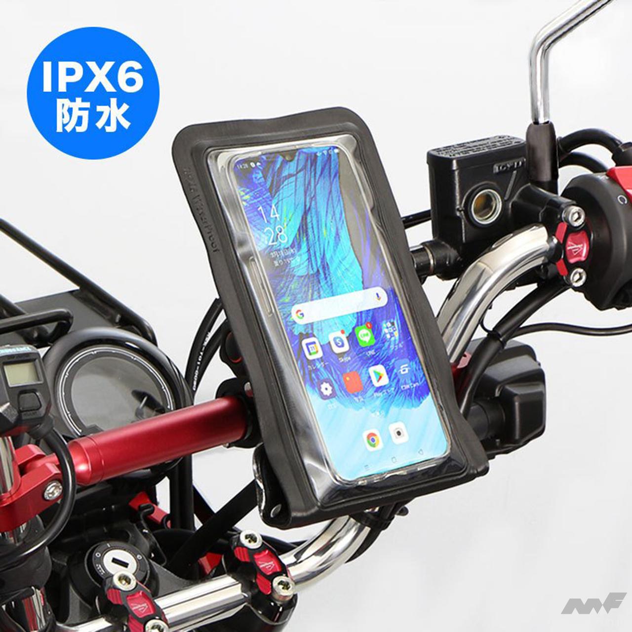 ENDURANCE(エンデュランス)が発売する汎用スマホホルダーは、タッチスクリーン対応のPVC製防水ケースを採用。防水性能はIPX6相当で、突然の雨でも安心して使えるのがポイントだ。