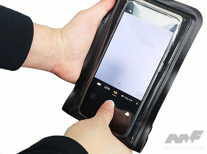 雨天時に重宝するスマホホルダー。カバーが濡れても、タッチ操作はスムーズ