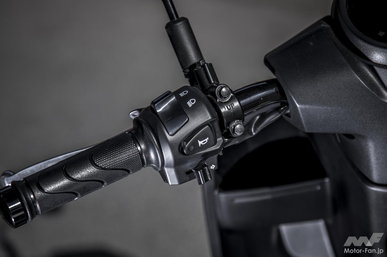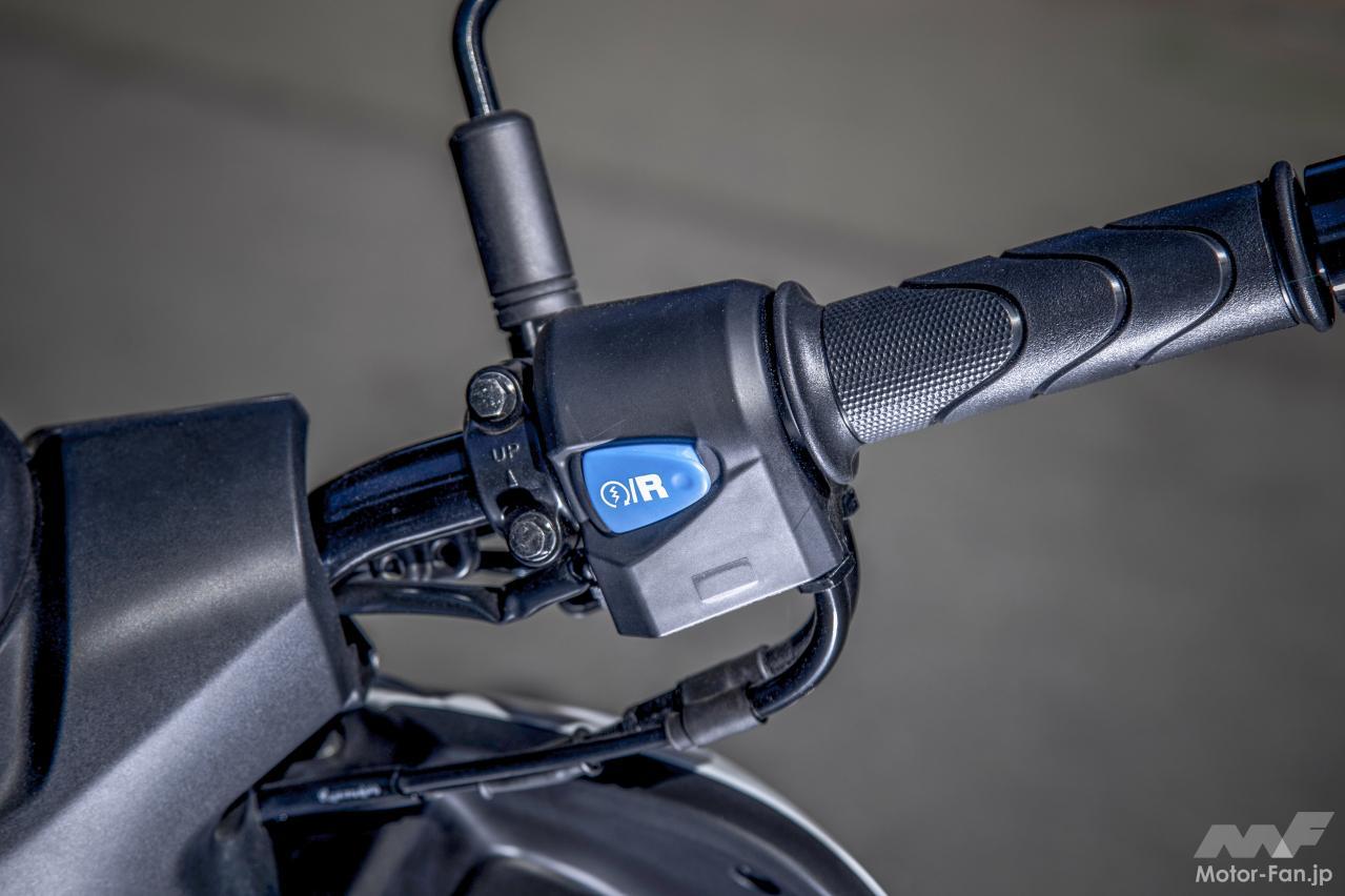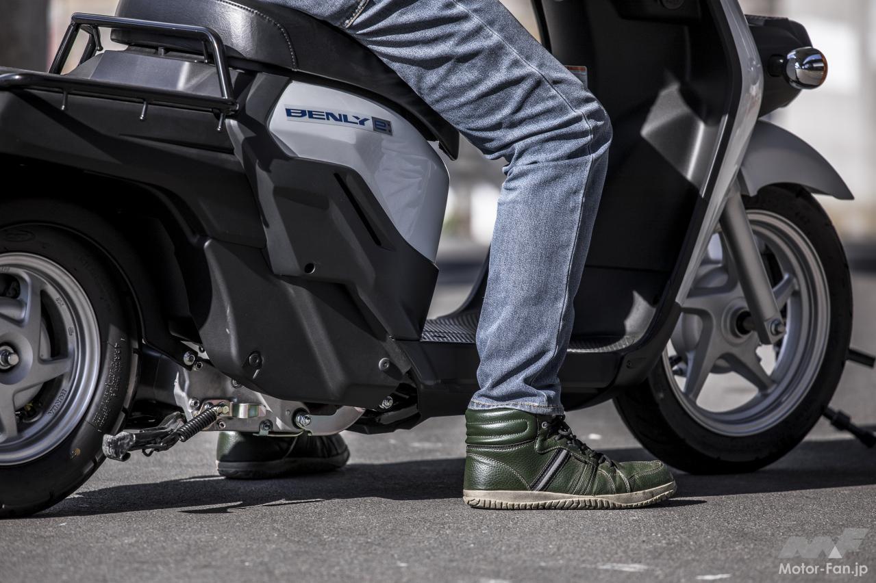 ところが、PCU(パワーコントロールユニット)を介して電力供給されるモーターの駆動力は強力で、発進から実用速度に達するまでの時間は明らかに速いのです。これは電力供給されたと同時に最大の力を発揮するモーターならではの特性が生きているのだといえます。一方で、この特性は低速での扱いにくさにつながるところでもあります。以前、中国製の電動スクーターに試乗したことがあるのですが、アクセルを開けると同時に飛び出してしまう怖さがありました。しかしベンリィe:Ⅰではこのあたりが緻密に制御されていて、エンジンと同じような感覚でアクセルワークできました。