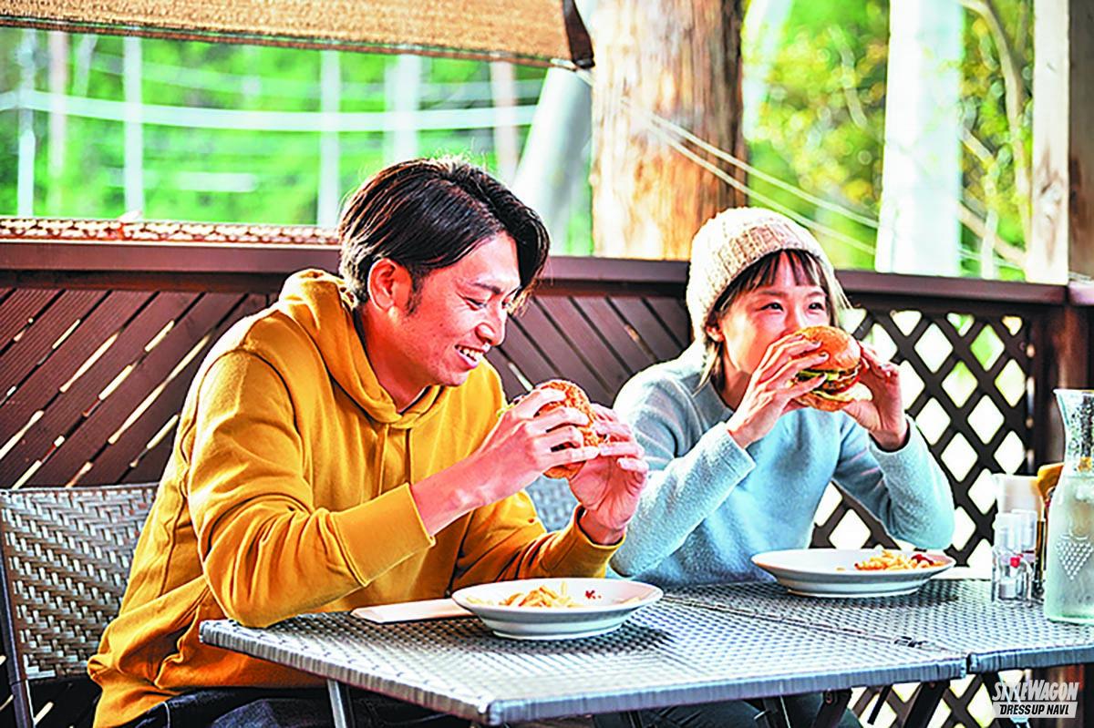 天然酵母のパンと100%ビーフのハンバーガーが美味しいお店。ウッドデッキの屋外テラスや店内には薪ストーブもあり、のんびりするのに最適だ。