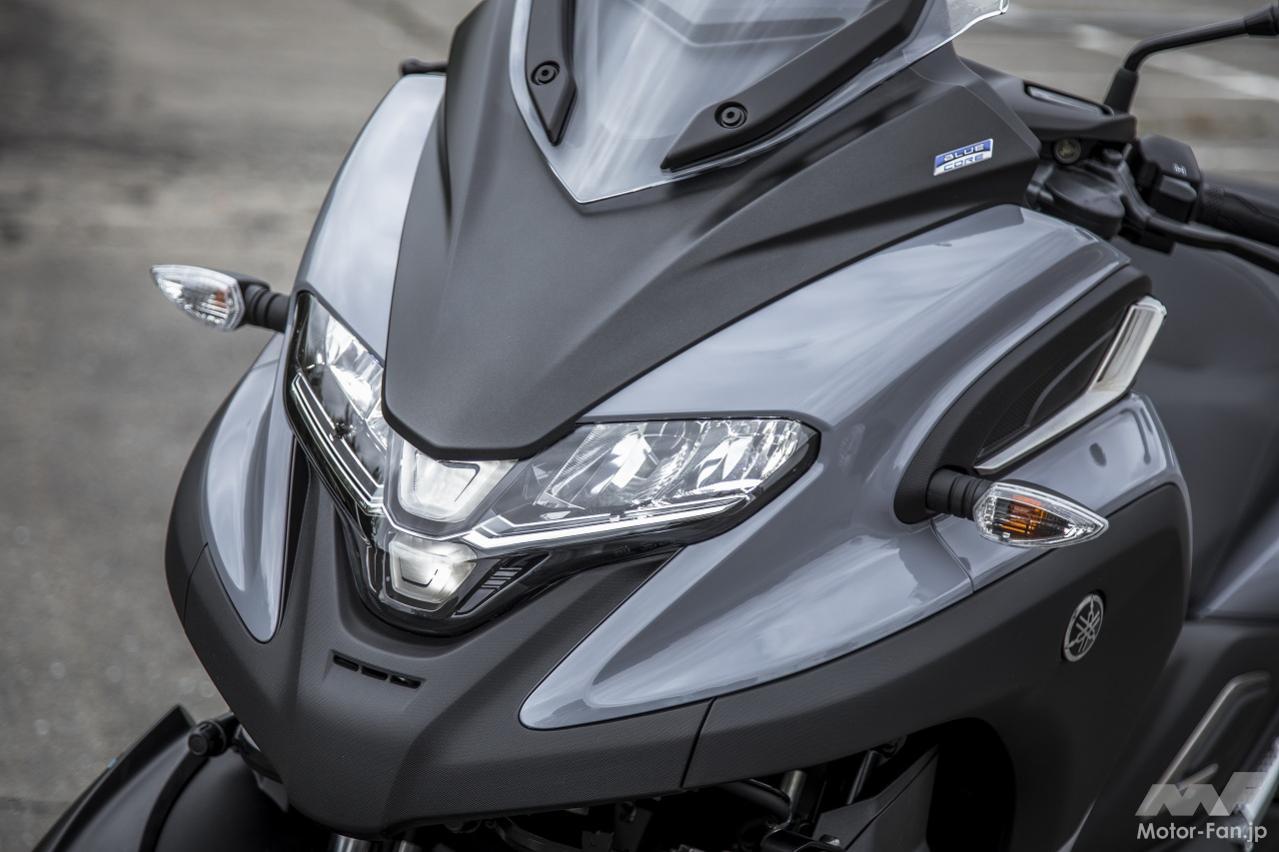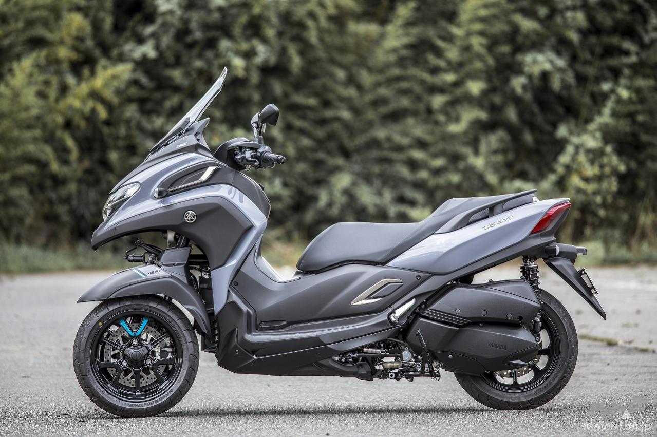 「トリシティ」シリーズは車体を傾けながら曲がるフロント2輪の3輪コミューター。アッカーマンLMWというヤマハ独自のステアリング機構を持っているのが特徴になっている。そのミドルレンジモデルとしてデビューしたのが「トリシティ300」だ。