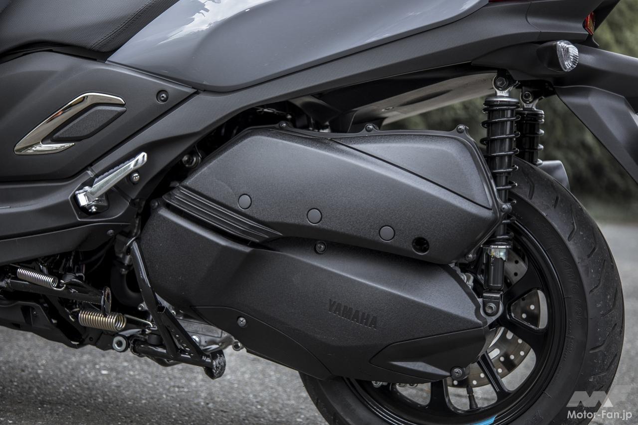 エンジンは欧州向けXMAX300の水冷単気筒BLUE COREをベースに専用セッティングされ、強化された独自のバックボーンフレームに搭載。シリーズ初の自立アシスト機構を採用したことでも注目を集めている。