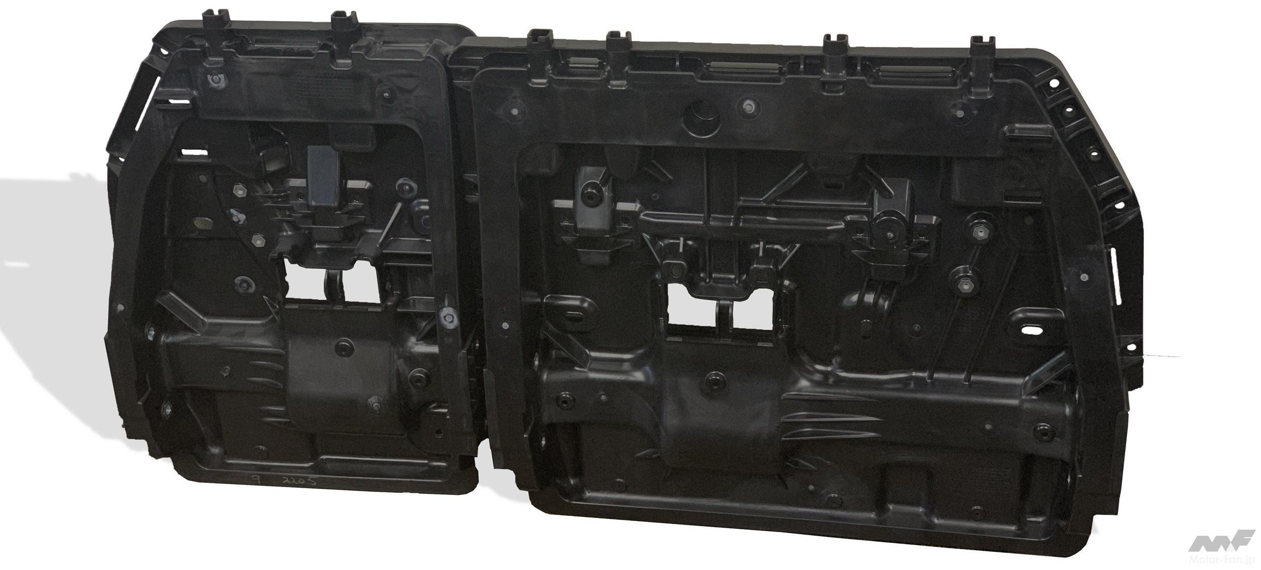 この3列シートの設計は、射出成形されたシートバックとしては初めて、一体成形としての設計を実現させた、ユニークな技術。また、衝撃に対する要件も満たしていることが確認されている。
