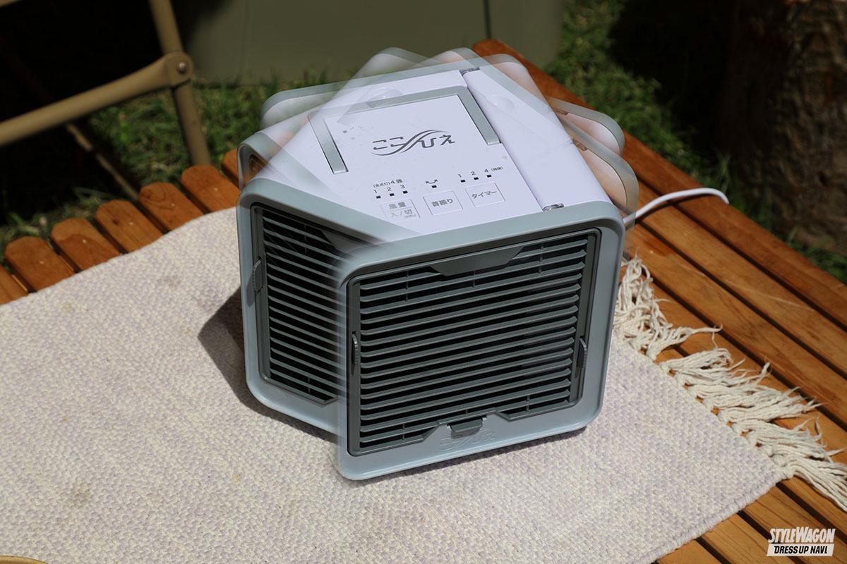 アイテム(カスタム) 30cm以内で楽しむ前提! 省エネ・パーソナルクーラー【銘柄決め打ちでチェック!】ショップジャパン・ここひえ R3【写真・3枚目】 重さ1.15kgの軽量ボディに卓上サイズのコンパクトさ。コンセントでもUSBでも使用可能で、寝室、リビング、脱衣所、デスク、屋外とシーンを選ばないのも魅力とか。 本体横に水タンク内蔵。「水分を含んだしっとり冷風」のうたい文句だが期待以上の効果は未確認。 左右で70度の首振り機能付き。ずっと同じ箇所に風を当てたくない、という人にはオススメか。 4段階の風量切り替え、首振り、タイマー…など、機能面をつかさどる操作パネルは上面に集中。 この画像の記事を読む