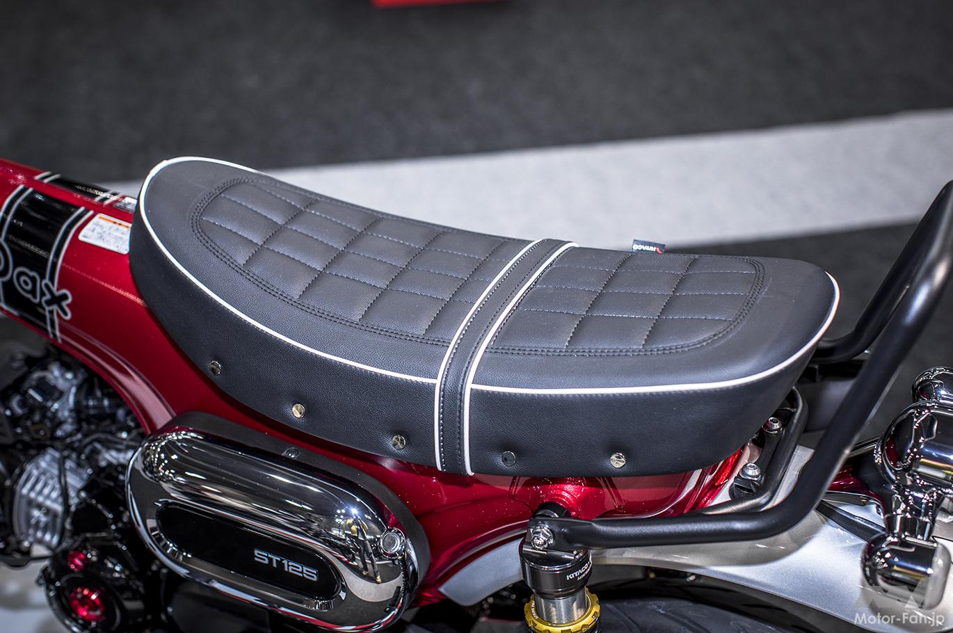 大阪モーターサイクルショー2022、ホンダブースに展示されていたのがコチラのダックスカスタマイズ。キタコ製パーツなら、レジャーバイクのホンダ・ダックスをスポーツライクに仕上げることも簡単!