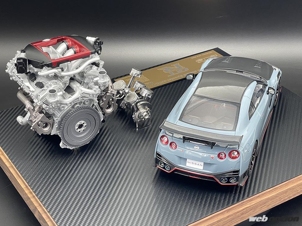 超精巧なエンジンスケールモデルで知られる“日下エンジニアリング”の「マスターズシリーズ(エンジンスケールモデルとモデルカーのセット)」に、2022年スペックのR35GT-Rニスモ(ステルスグレー)が設定された。