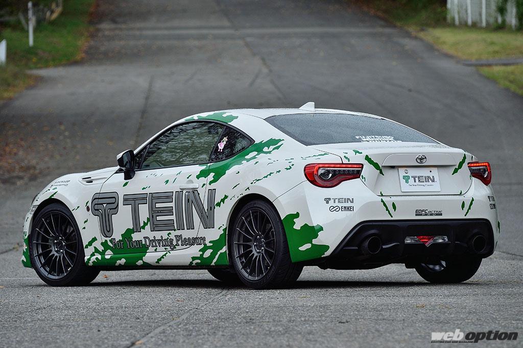 今回テインが取材に用意したZN6型86は、エクステリアこそ競技車のように派手な仕様になっているが、フレックスAの特性を味わえるようにと、サス以外はタイヤとブレーキのみの変更に留められている。