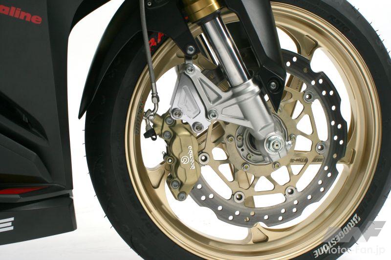 ラジアルマウント型キャリパーとはホイールの中心線に向かい、垂直方向(フロントの場合はほぼ進行方向)にボルトで固定されたタイプ。一般的にこのタイプは、ブレーキの効きや制御性に優れているのが特長。その性能が評価・実証され、現在ではMotoGPマシンを始めとしたレースマシンや、超高性能な市販のスーパースポーツモデルの定番となっている。