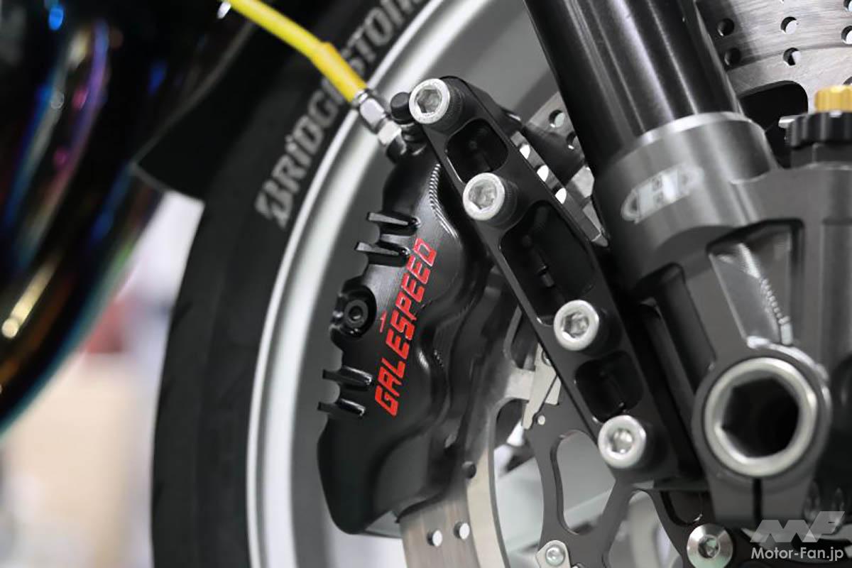 「GALE SPEED(ゲイルスピード)」はパーツメーカーのアクティブが2002年に立ち上げた自社ブランド。強度と耐久性のある鍛造アルミニウムを、運動性能のいい重量配分で削り出したビッグバイク用スポーツホイールや、ミニバイクカスタム用12インチアルミキャストホイール等々、高性能な足周りパーツを展開。