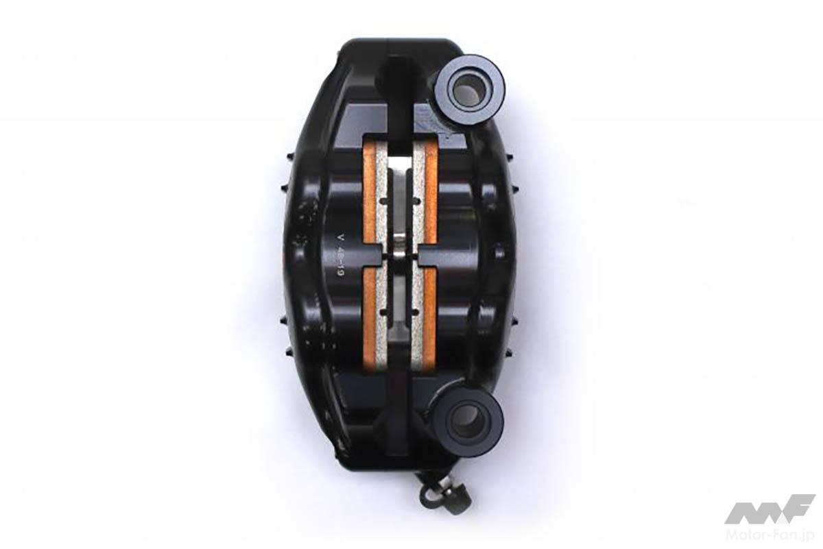ボディを2ピース構造とすることで、内部を無駄なく切削。ディスクを挟み込むスペースを最小にしてピストン吐出量を抑え、ダイレクトなタッチを実現。リア用2POT(取付ピッチ84mm/カラーはシルバーとブラックあり/3万3000円)もラインナップ。