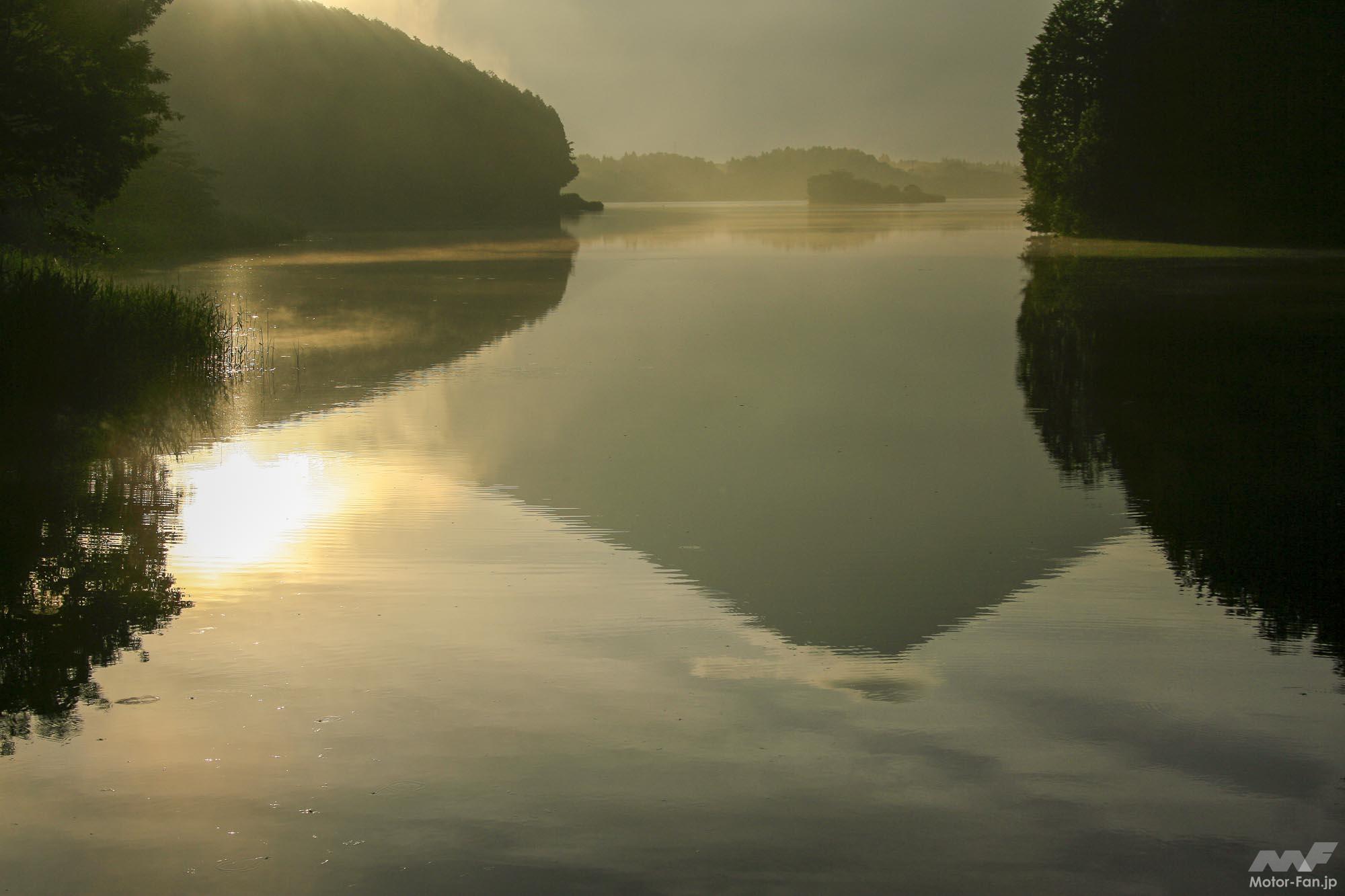 今回ご紹介する「田貫湖」は本栖湖から富士宮方面へさらに19Kmほど離れ、富士山の西側に位置している。周囲3.3kmほどの小さな湖だ。静かに佇む湖面に逆さ富士が浮かぶ光景が有名。そして何よりも4月20日と8月20日前後の一週間ほどは、まるで富士山の頂きから太陽が昇り出るように見える「ダイヤモンド富士」の絶景が拝める名所として知られる。